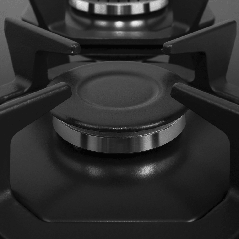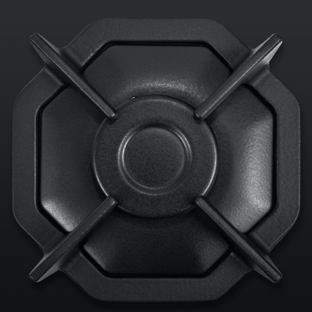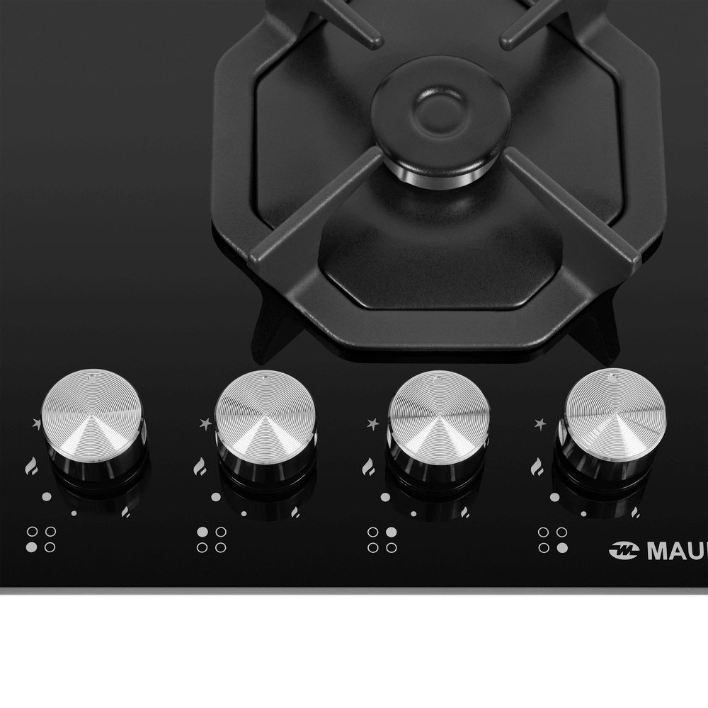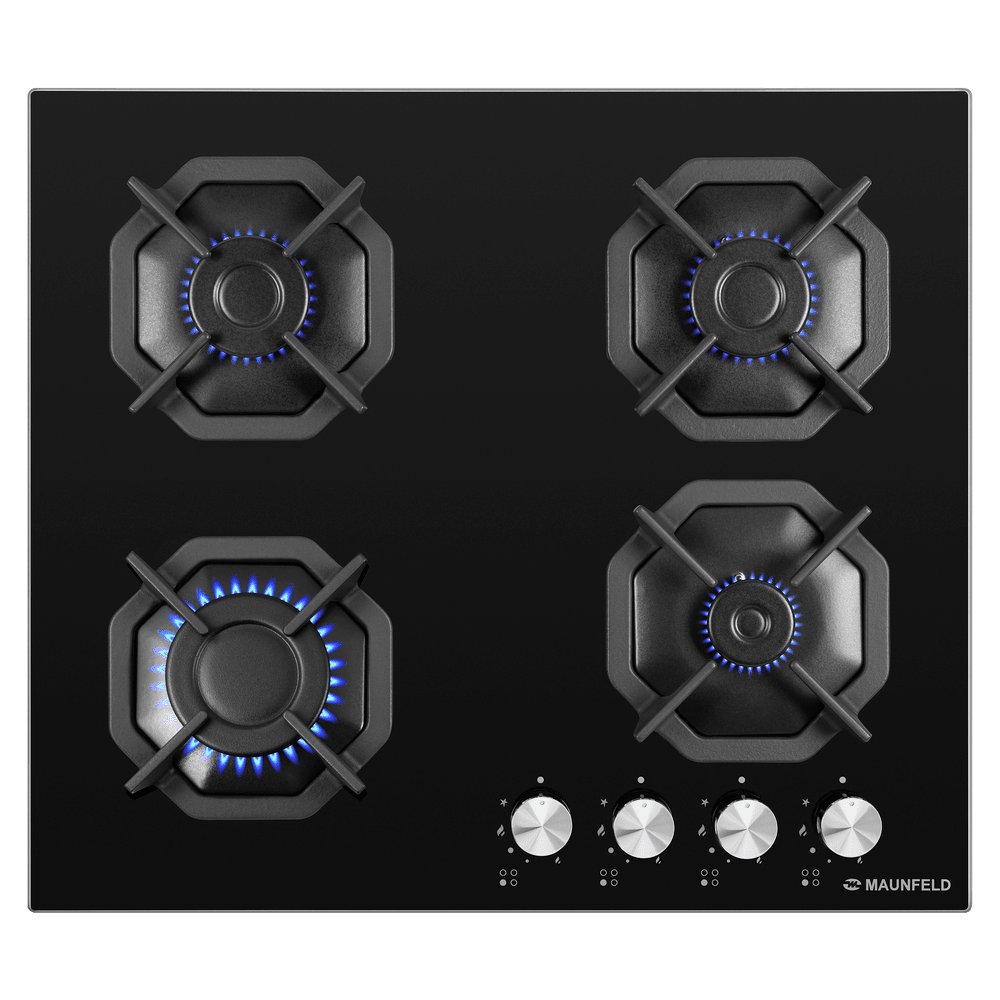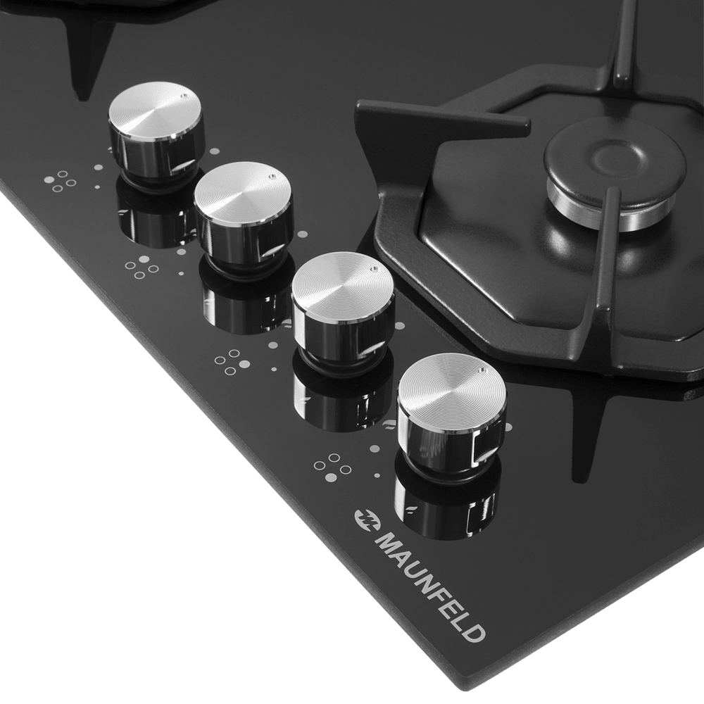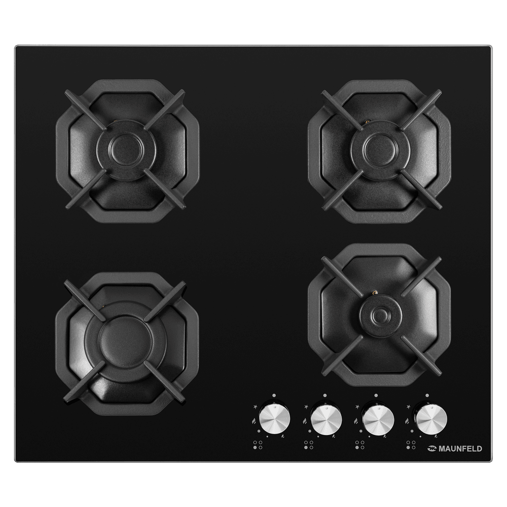 Восьмиугольные чугунные подставки – это запатентованное изобретение MAUNFELD, прочные и долговечные. Сами конфорки спроектированы таким образом, что огонь не перегревает ни чугунные решетки, ни ручки управления.