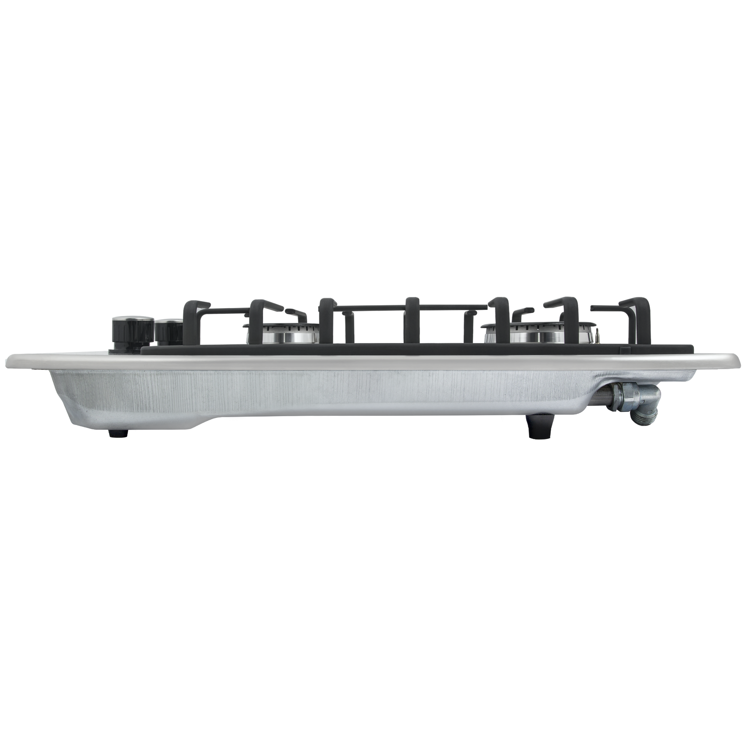 Компактная газовая варочная панель шириной 30 см поместится даже на небольшой кухне. Она не только встраивается в столешницу, но и может использоваться как отдельностоящая плита, благодаря 4 ножкам-опорам, которые идут в комплекте. Работает от магистрального газа и газа в баллоне (тип G30). Для этого достаточно поставить специальные жиклеры французской фирмы SOURDILLON.