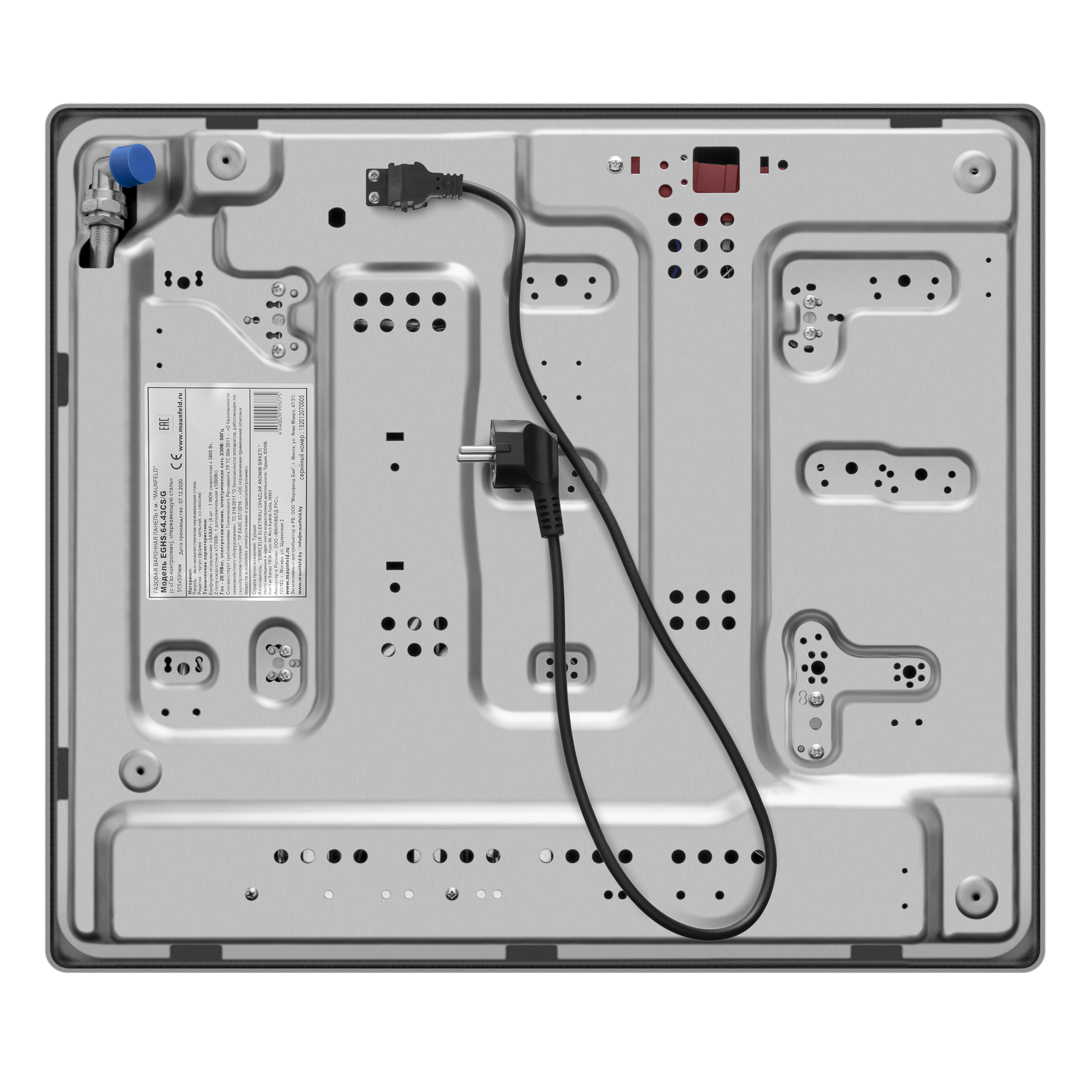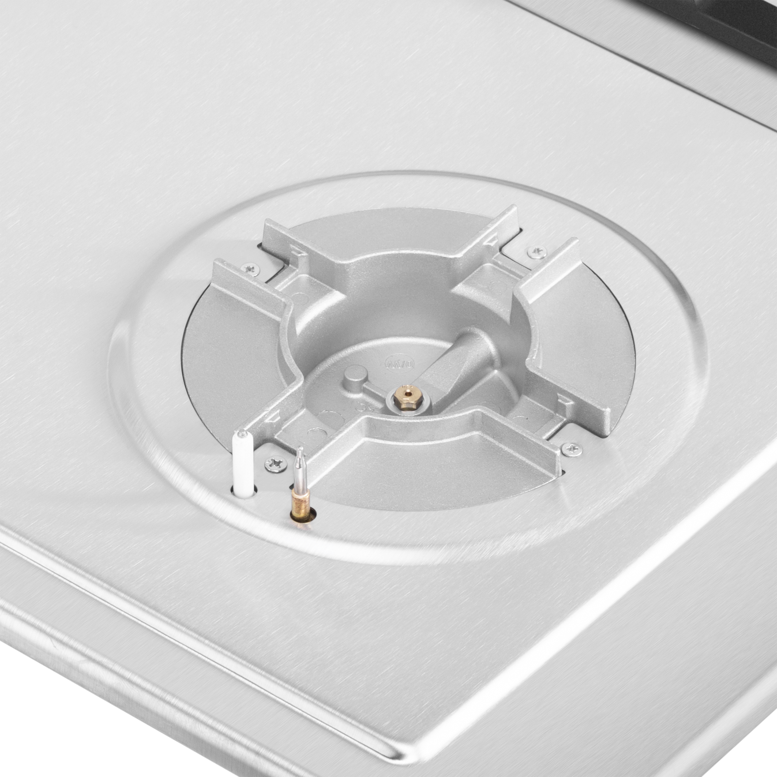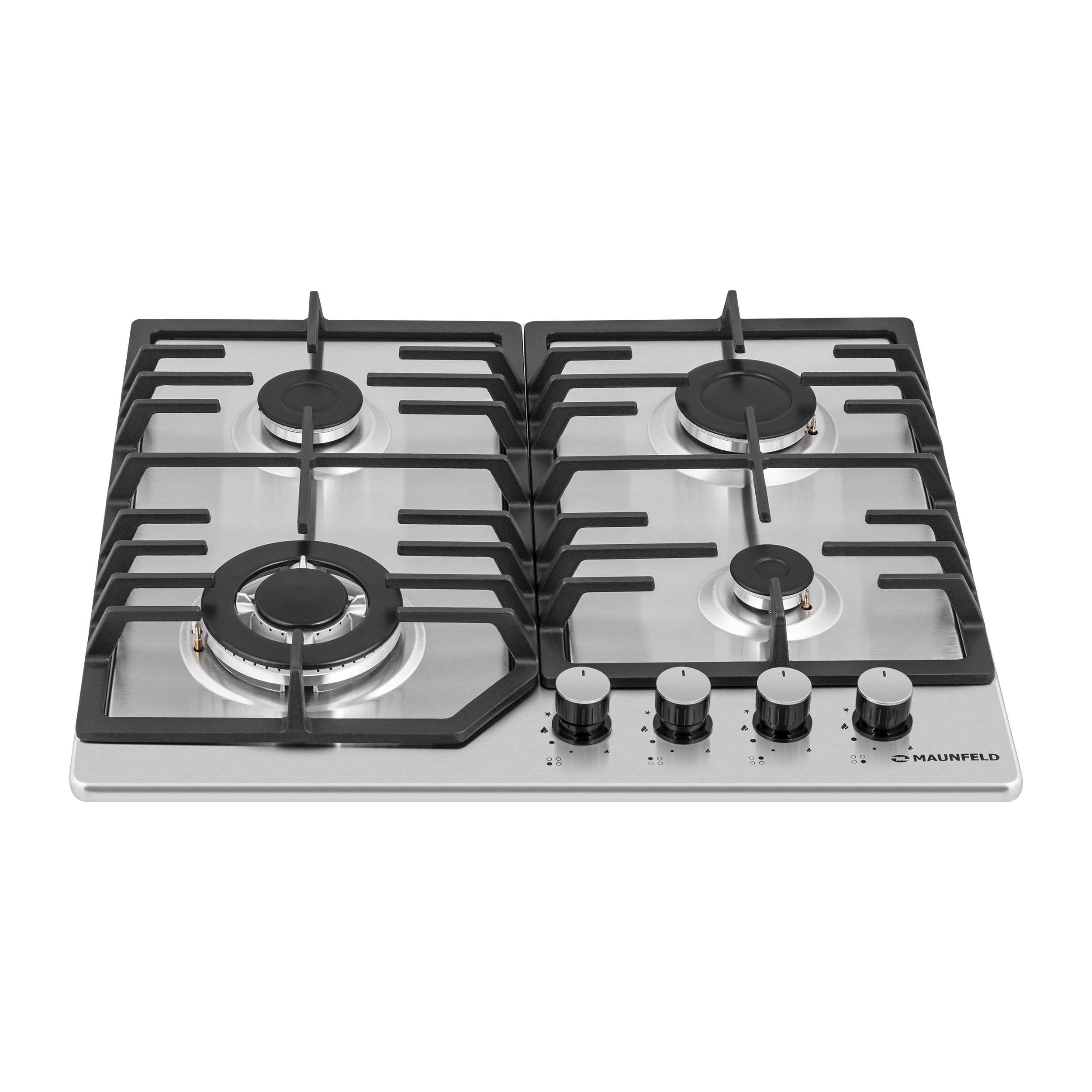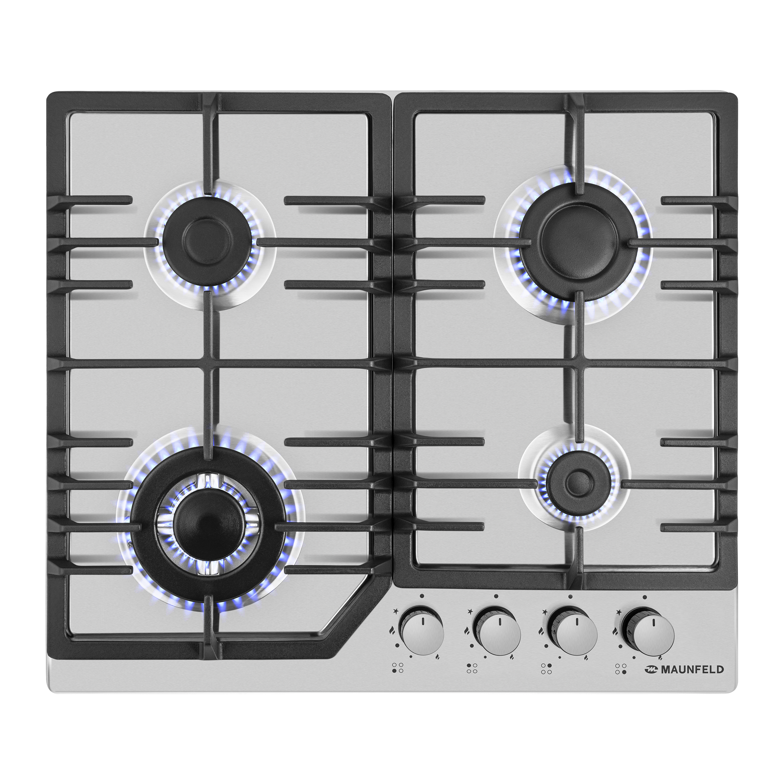 Панель выполнена нержавеющей стали. В данной модели установлены высококачественные итальянские горелки SABAF. Три стандартные конфорки мощностью 1000 Вт, 1700 Вт, 1700 Вт и 1 сверхмощная WOK-конфорка с двойным пламенем мощностью 3800 Вт.