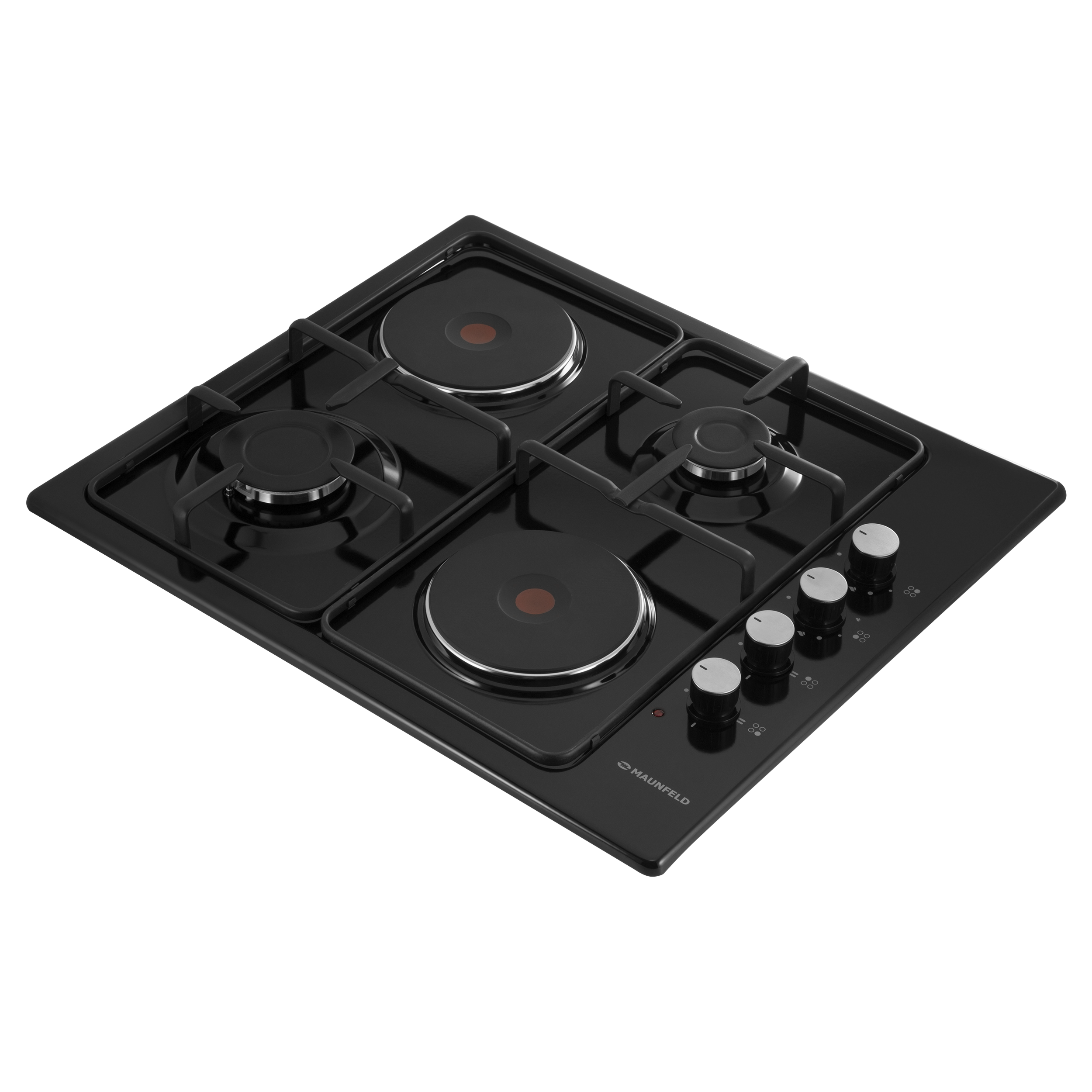 Универсальная встраиваемая комбинированная варочная панель шириной 60 см - идеальное сочетание газовой и электрической плит. Панель выполнена из нержавеющей стали с термостойким покрытием из эмали черного цвета. Может работать как от магистрального газа, так и от газа в баллоне (тип G30), для этого достаточно поставить специальные жиклеры французской фирмы SOURDILLON, имеющиеся в комплекте.