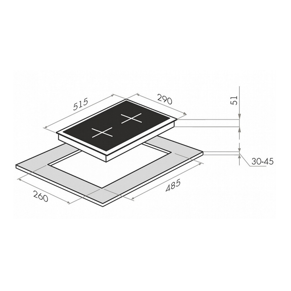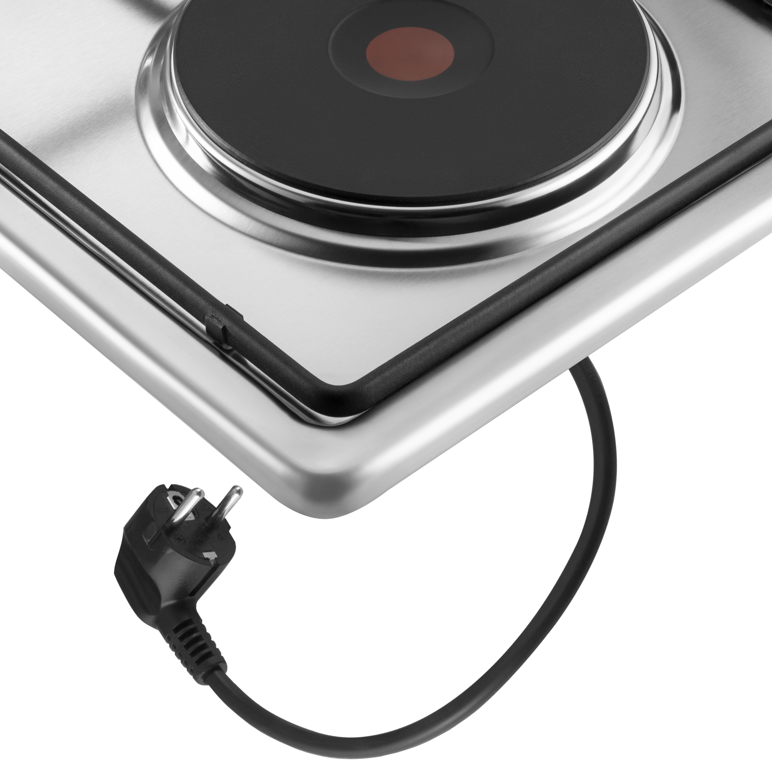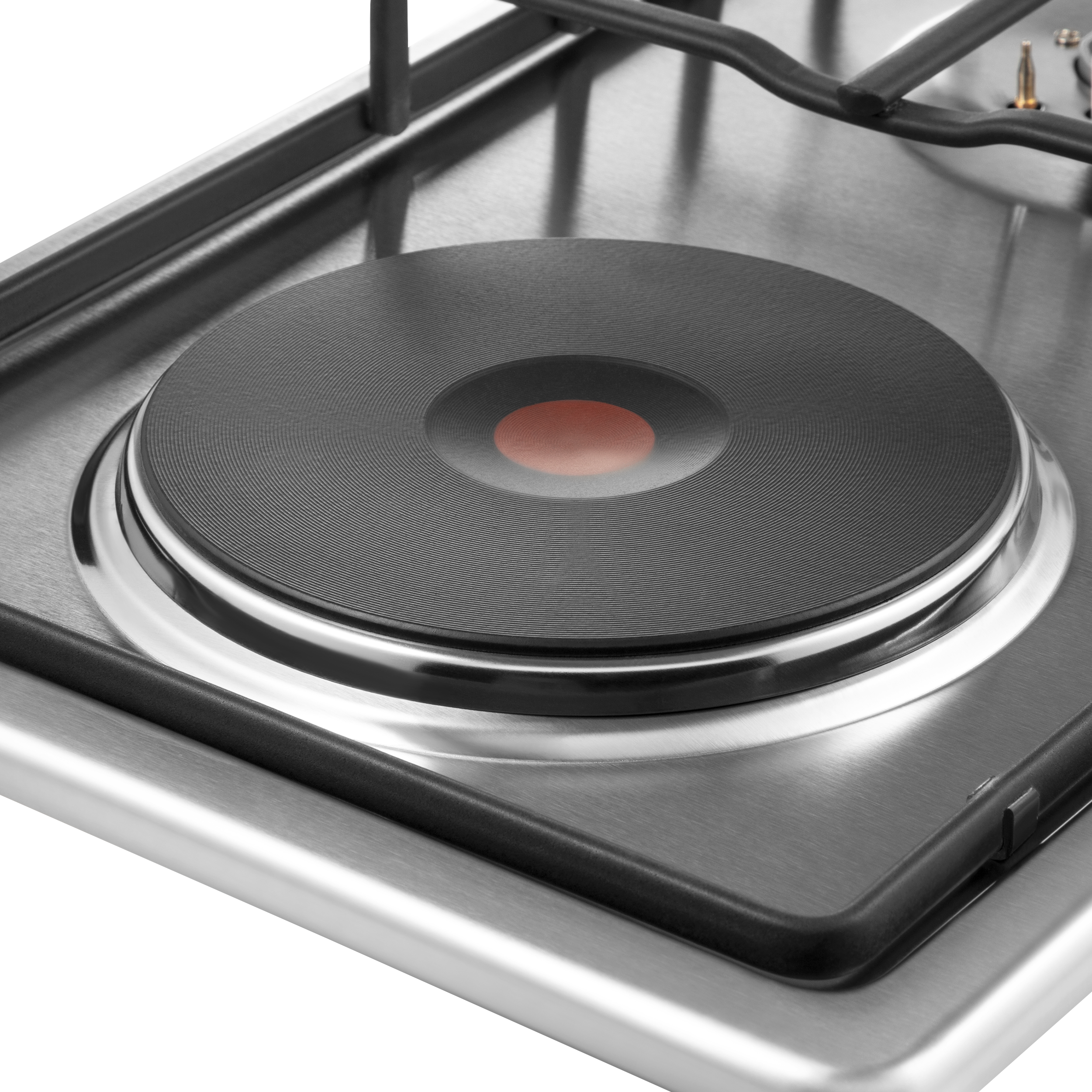 Одна электрическая HP RAPID конфорка диаметром 180 мм и мощностью 1500 Вт каждая. Выполнена из чугуна со стальной окантовкой. Красный круг по центру каждой конфорки – индикатор нагрева.