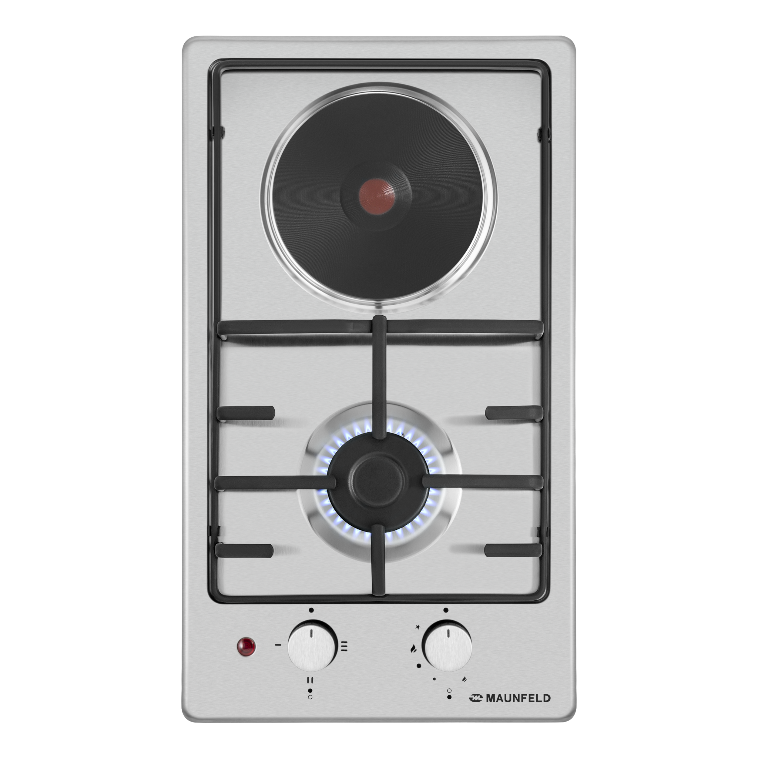 Компактная встраиваемая комбинированная варочная панель шириной 30 см - уникальное сочетание газовой и электрической плит. Панель выполнена из нержавеющей стали, устойчивого к царапинам и постоянным перепадам температур. Может работать как от магистрального газа, так и от газа в баллоне (тип G30), для этого достаточно поставить специальные жиклеры французской фирмы SOURDILLON, имеющиеся в комплекте.
