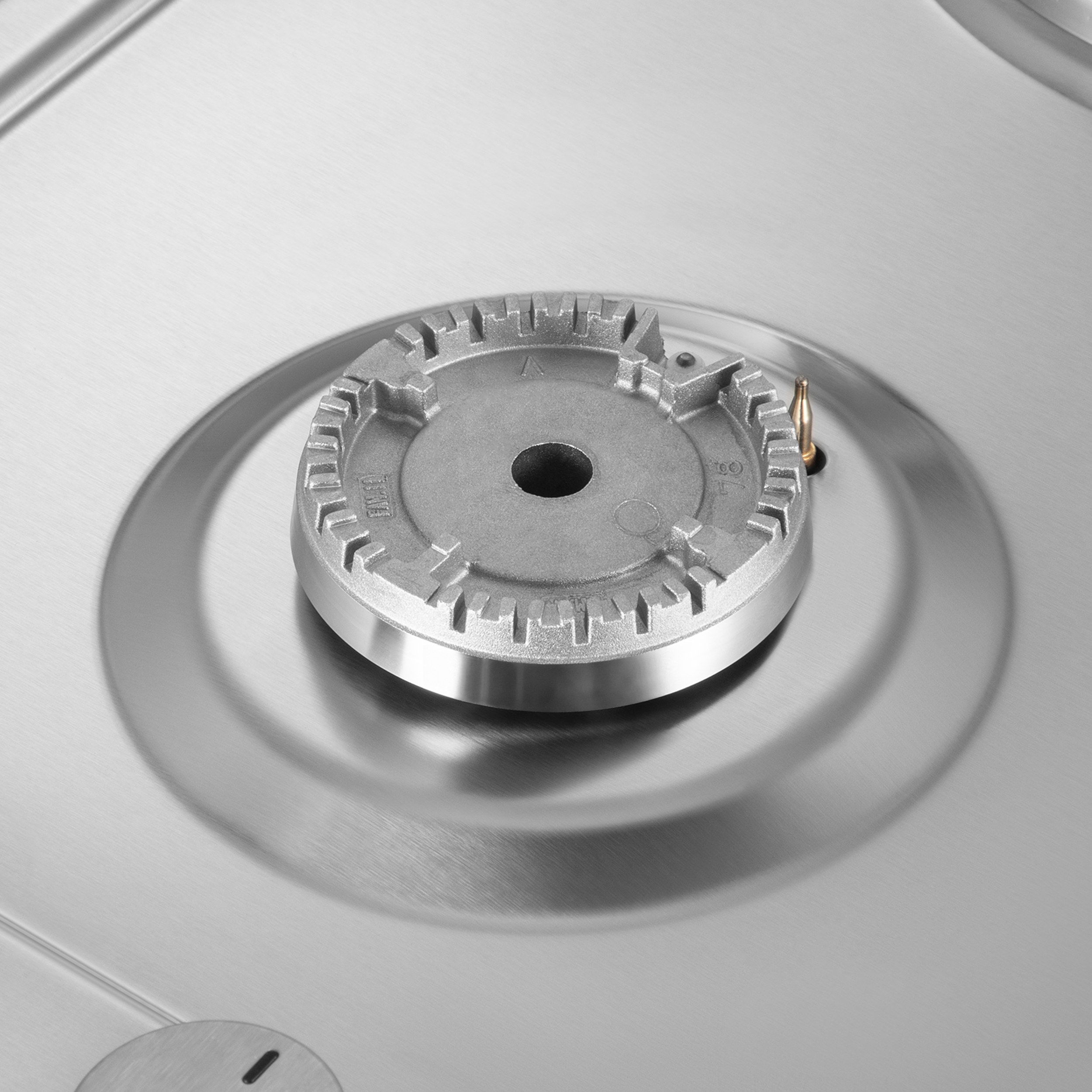 Одна газовая высококачественная итальянская горелка SABAF мощностью 1700 Вт. Укомплектована чугунной решеткой, надежно защищающей газовую горелку и не мешающей при готовке на электрической конфорке.