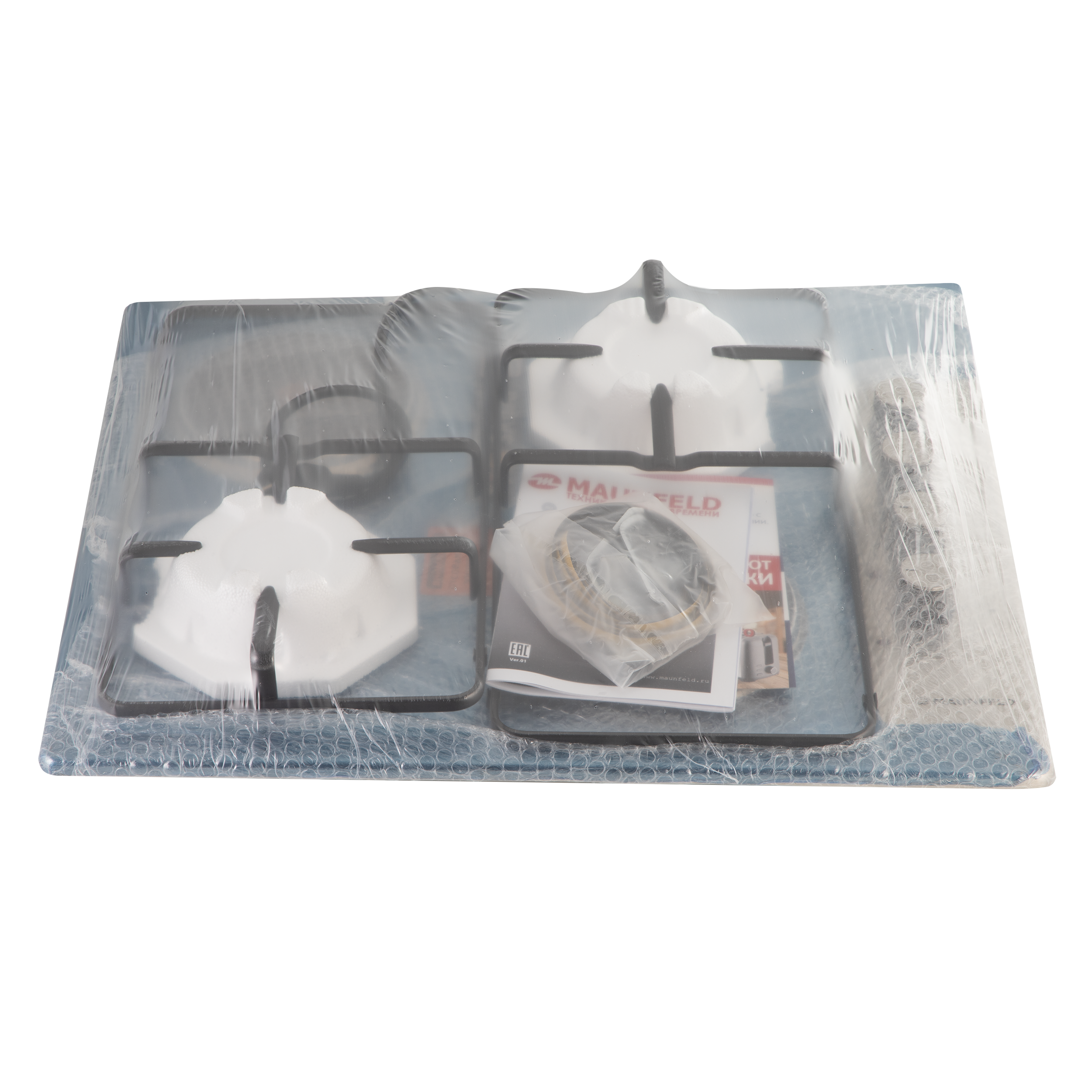 Две эмалированные решетки черного цвета надежно защищают газовые горелки и не мешают при использовании электрических конфорок.