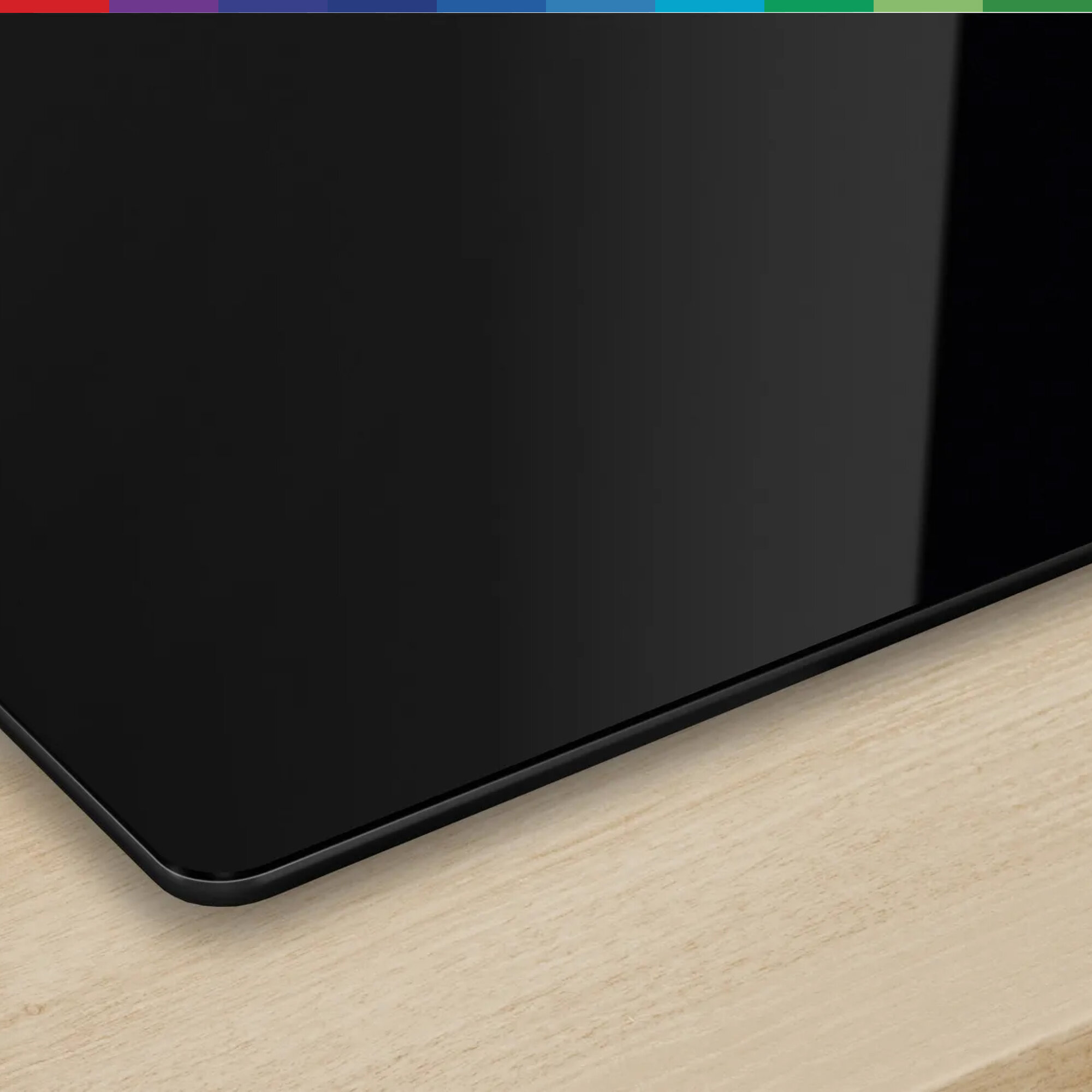 • Безрамочная конструкция: поверхность варочной панели немного приподнята, чтобы отличить поверхность для приготовления пищи от рабочей поверхности.