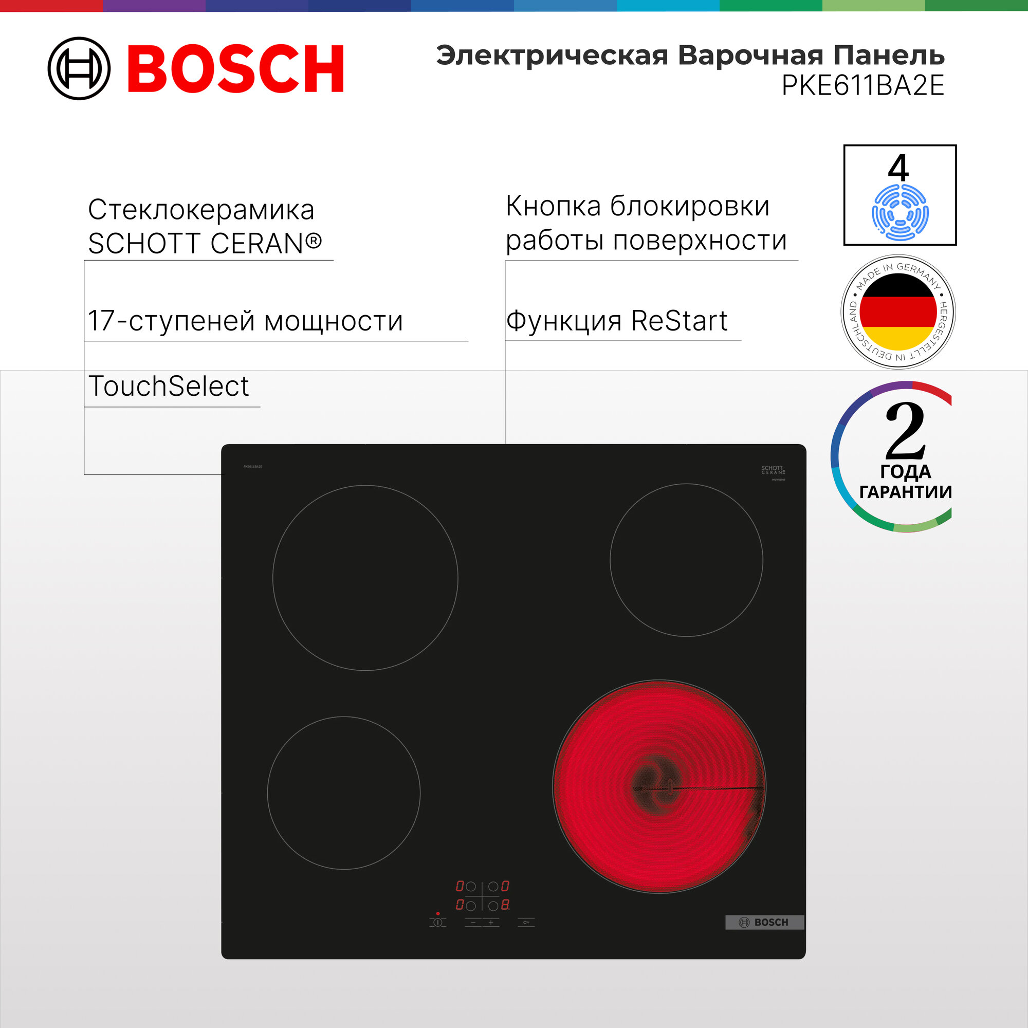 Страна производства: Германия. Товар новый в заводской упаковке. Стеклокерамическая излучающая варочная панель: особенно облегчает приготовление пищи и очистку.