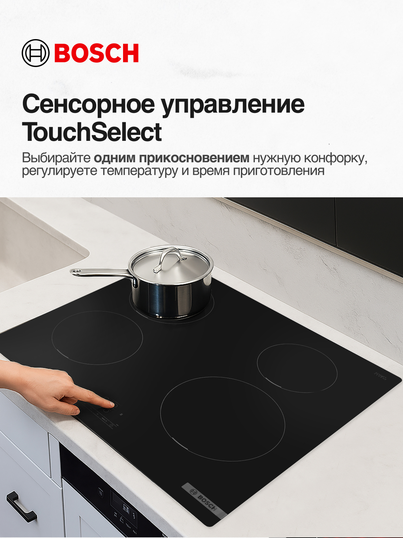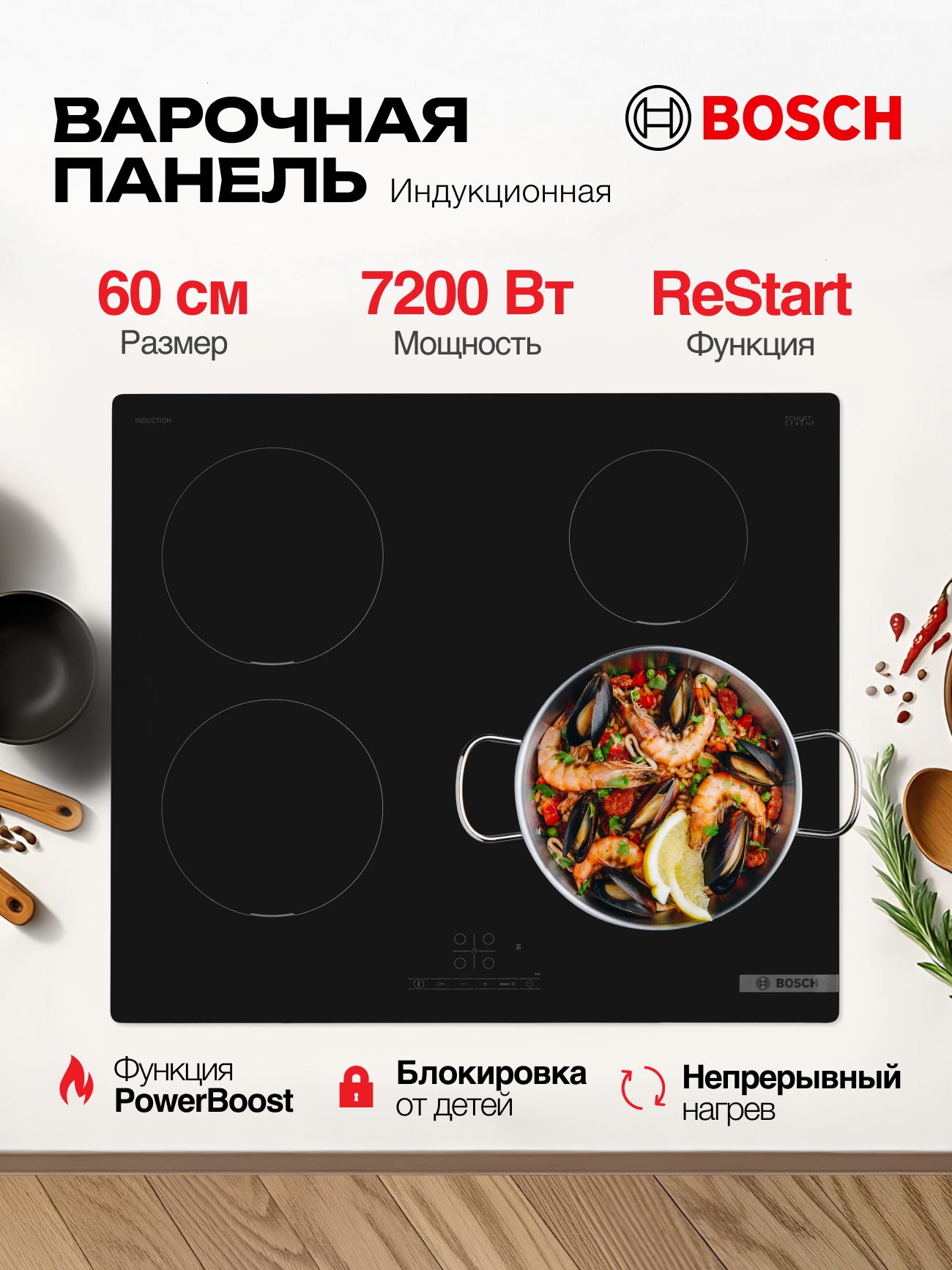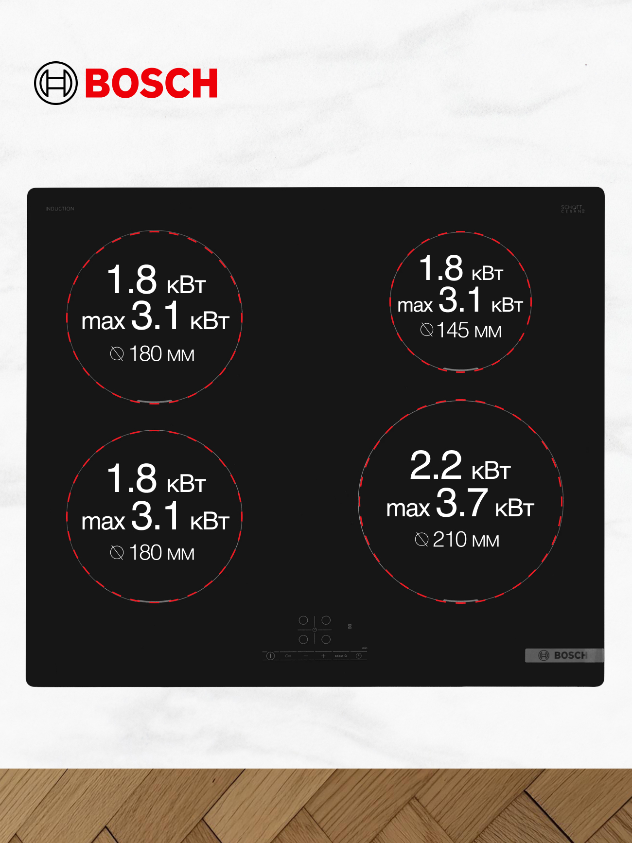 Варочная панель индукционная Bosch PUE611BB5E Serie 4, конфорок - 4 шт, стеклокерамика. 4600 Вт