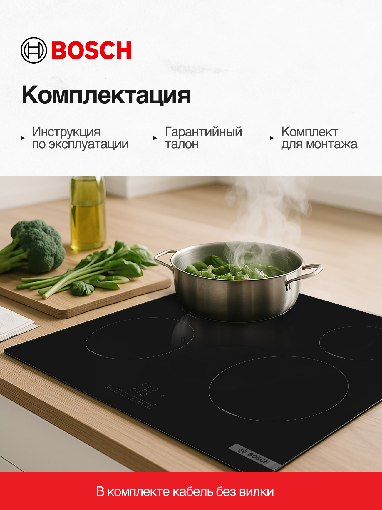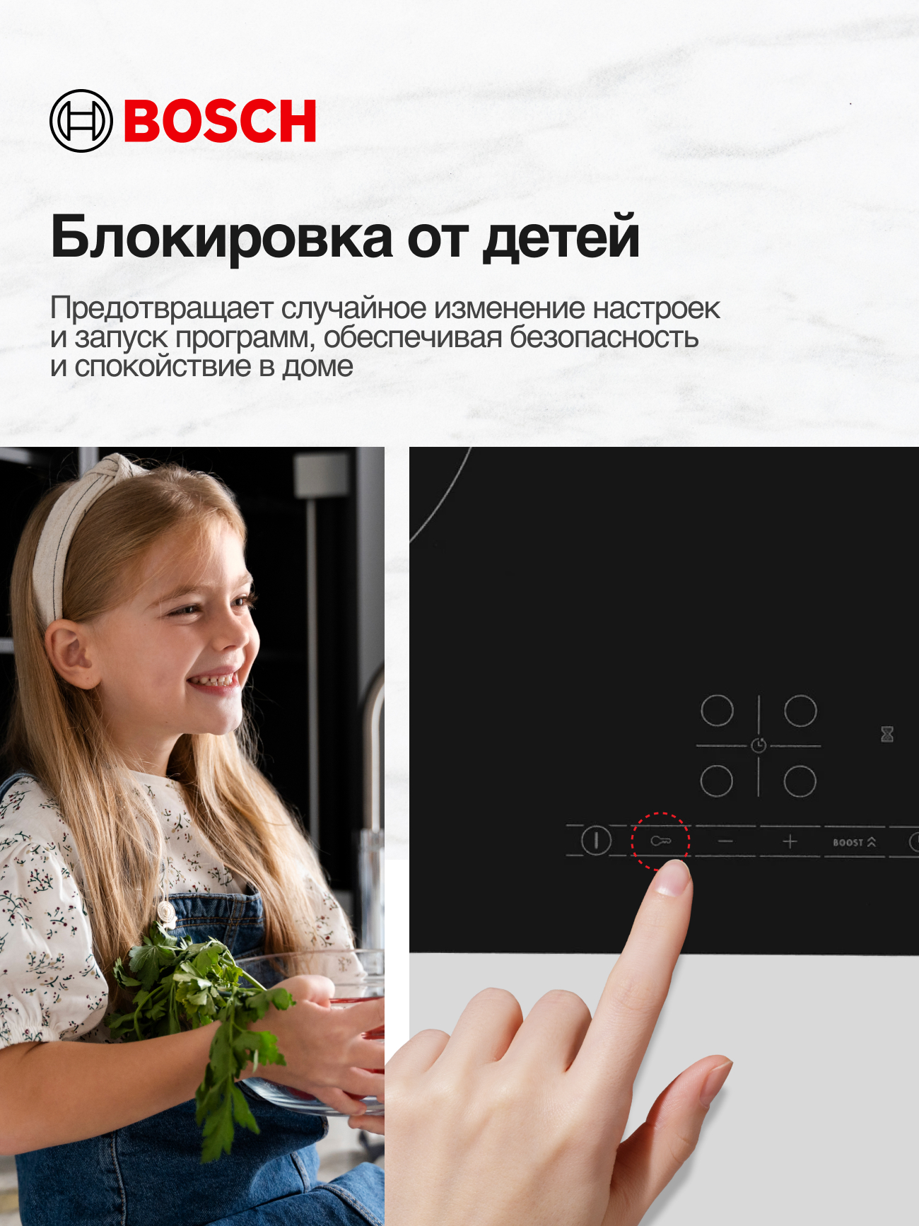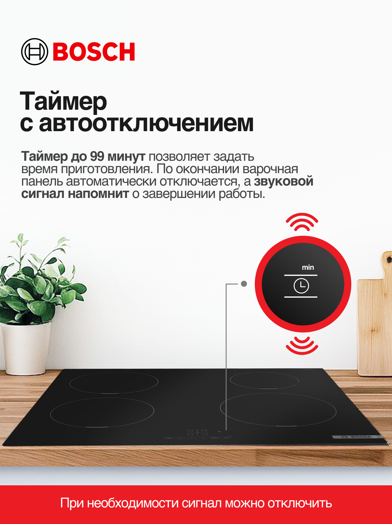 Варочная панель индукционная Bosch PUE611BB5E Serie 4, конфорок - 4 шт, стеклокерамика. 4600 Вт