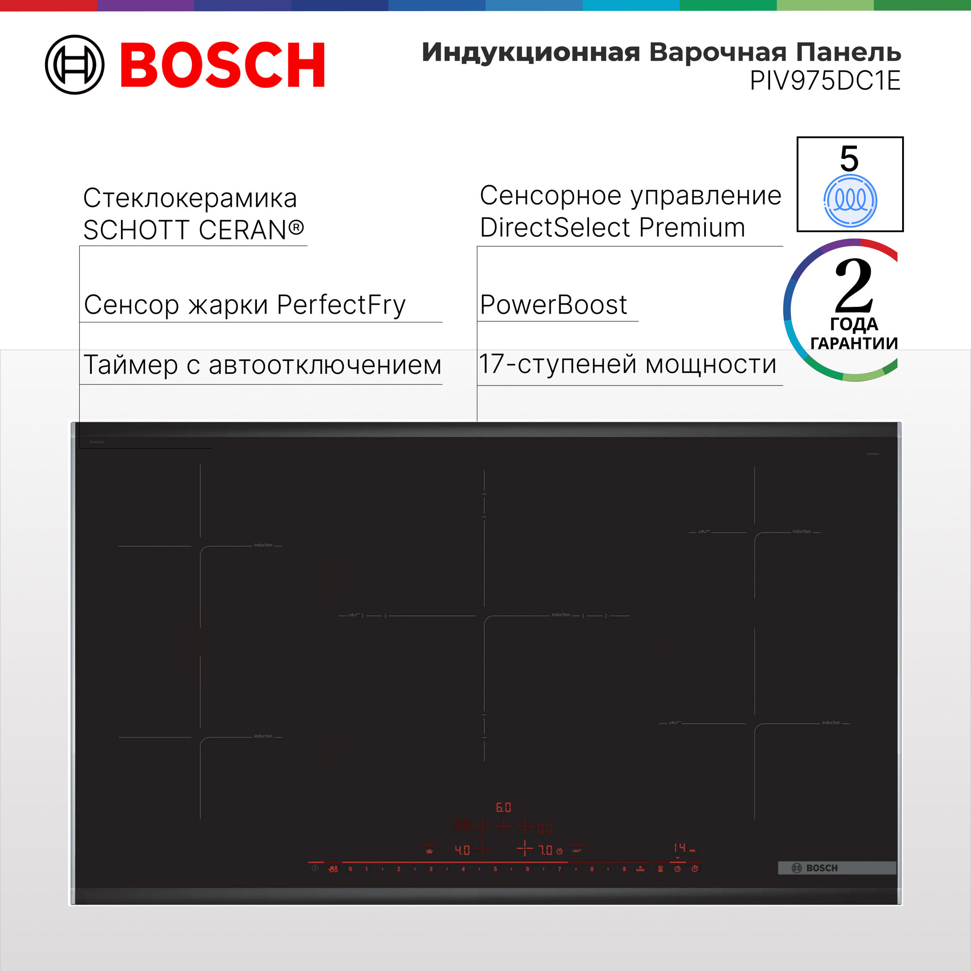 • DirectSelect Premium: Прямой, простой выбор нужной зоны нагрева, мощности и дополнительных функций.