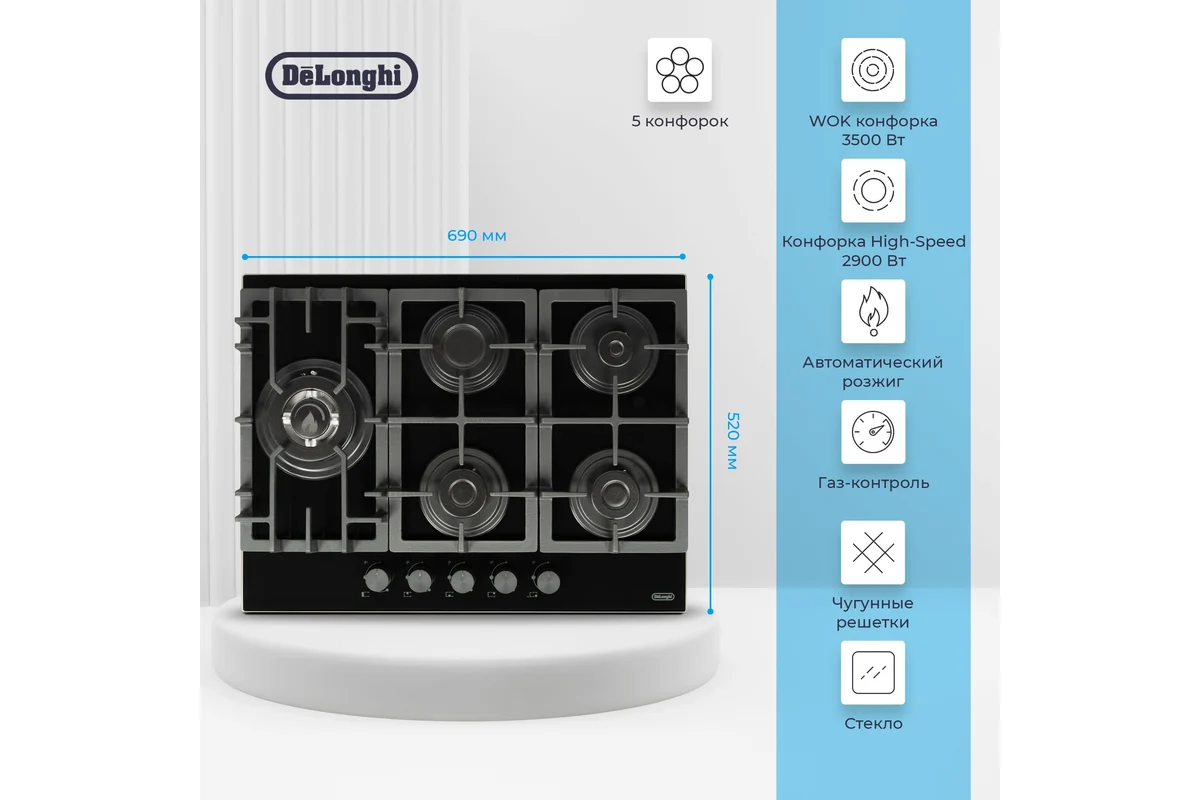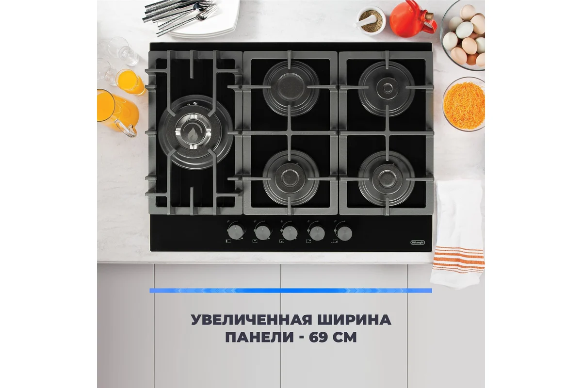 Встраиваемая газовая варочная панель DeLonghi - искусство готовки в вашем доме! Разрешите себе наслаждаться каждым моментом кулинарного творчества с газовой варочной панелью от DeLonghi! Эта панель сочетает в себе элегантный дизайн, продвинутые технологии и практичность, что делает ее идеальным выбором для любой кухни. Закаленное черное стекло не только выглядит стильно, но и обеспечивает долгий срок службы, устойчиво к высоким температурам и легкостью в уходе. Наличие WOK и двойной зоны нагрева позволяет вам готовить разнообразные блюда, от легких запеканок до традиционных восточных блюд, обеспечивая быструю и равномерную теплоту. Никаких дополнительных зажигалок! Просто поверните переключатель, и пламя готово за считанные секунды. Система безопасности автоматически отключает подачу газа, если пламя гаснет, обеспечивая ваше спокойствие во время готовки. Поворотные переключатели расположены спереди для вашего удобства, что позволяет быстро настраивать мощность огня. Разработка и сборка в Турции с соблюдением высоких итальянских стандартов гарантируют безупречное качество и долговечность. Ваша уверенность в надежности изделия подтверждается гарантией от производителя. Варочная панель DeLonghi — это не просто кухонное оборудование, а стильный аксессуар, который придаст вашему интерьеру современный вид. Создавайте кулинарные шедевры с легкостью и вдохновением! Выбирайте качество, безопасность и стиль с варочной панелью DeLonghi и сделайте каждое приготовление пищи незабываемым опытом!