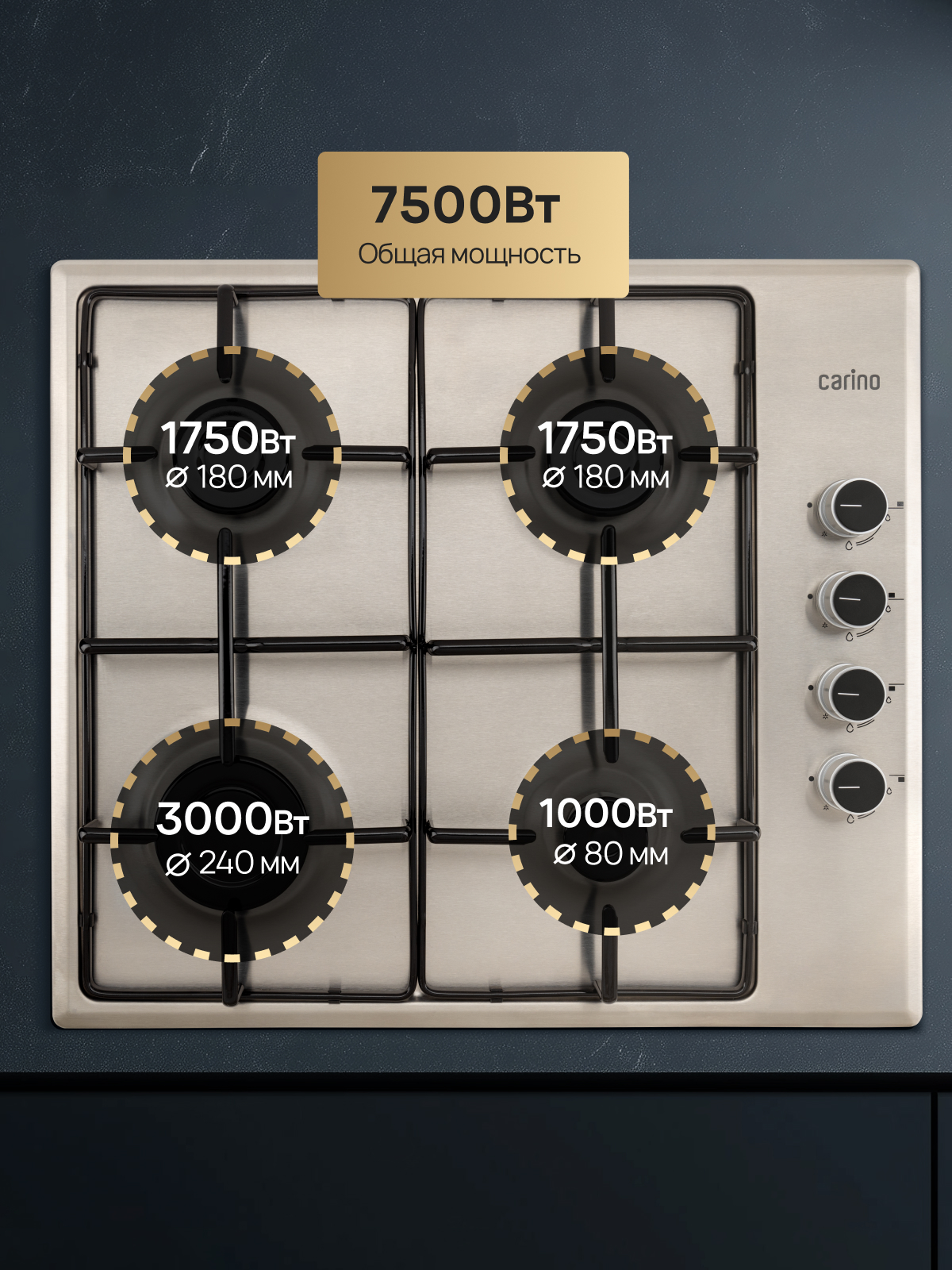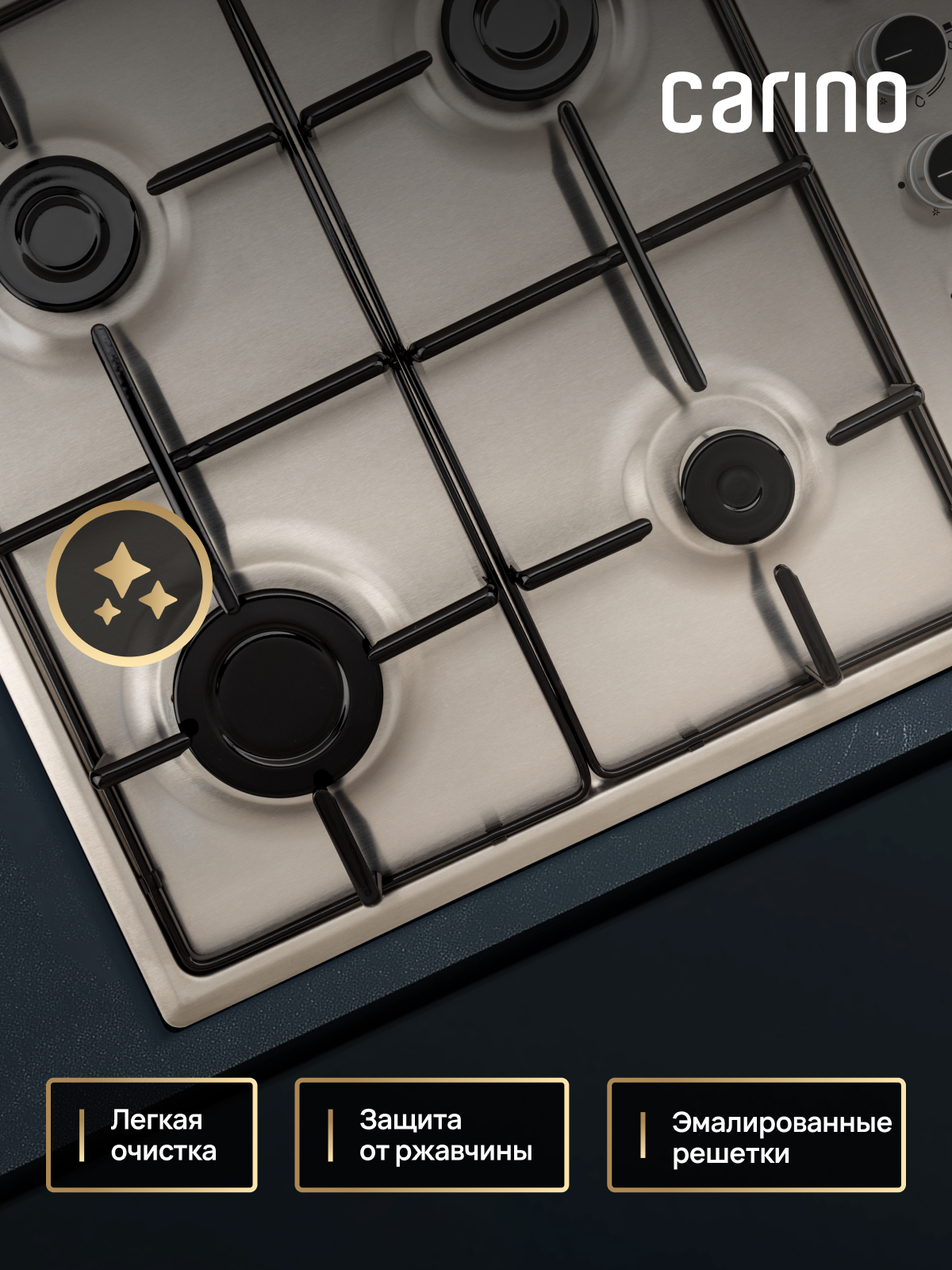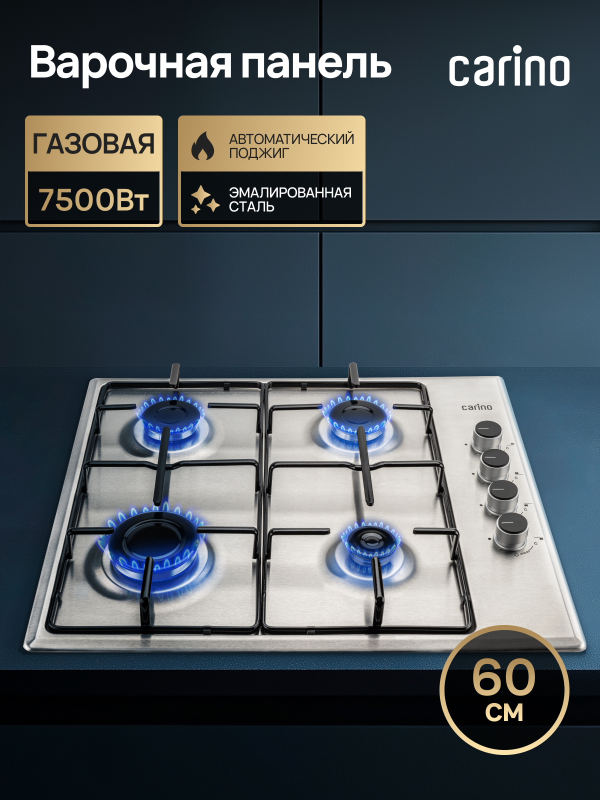 Варочная панель CARINO CH60Q40M411 дарит вам абсолютный контроль. Четыре конфорки разного диаметра и мощности (от 1 до 3 кВт) готовят идеально — от мгновенного кипячения в большой кастрюле до томления нежного соуса. Прочная эмалированная поверхность и решетки с антикоррозийным покрытием выдерживают ежедневное использование.