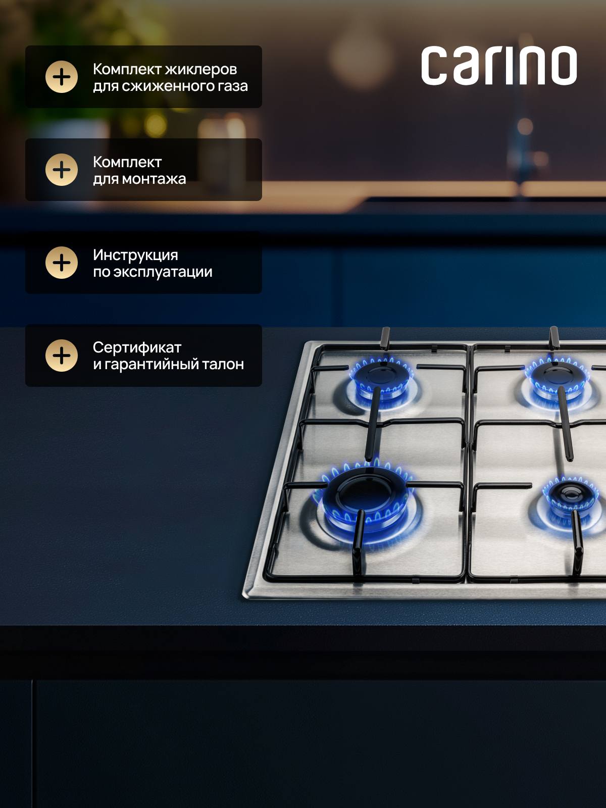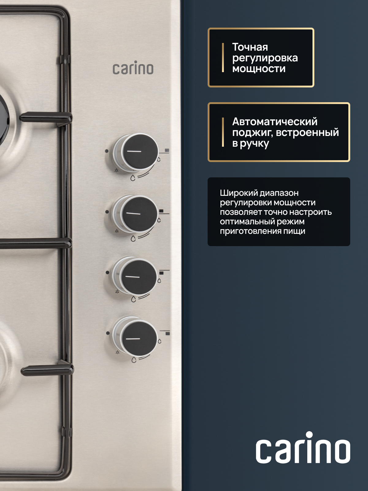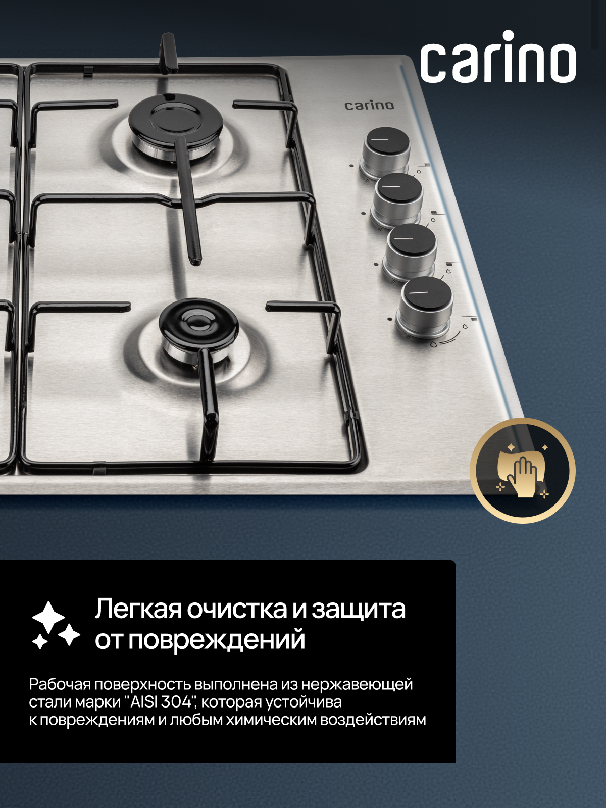 Варочная панель CARINO CH60Q40M411 дарит вам абсолютный контроль. Четыре конфорки разного диаметра и мощности (от 1 до 3 кВт) готовят идеально — от мгновенного кипячения в большой кастрюле до томления нежного соуса. Прочная эмалированная поверхность и решетки с антикоррозийным покрытием выдерживают ежедневное использование.