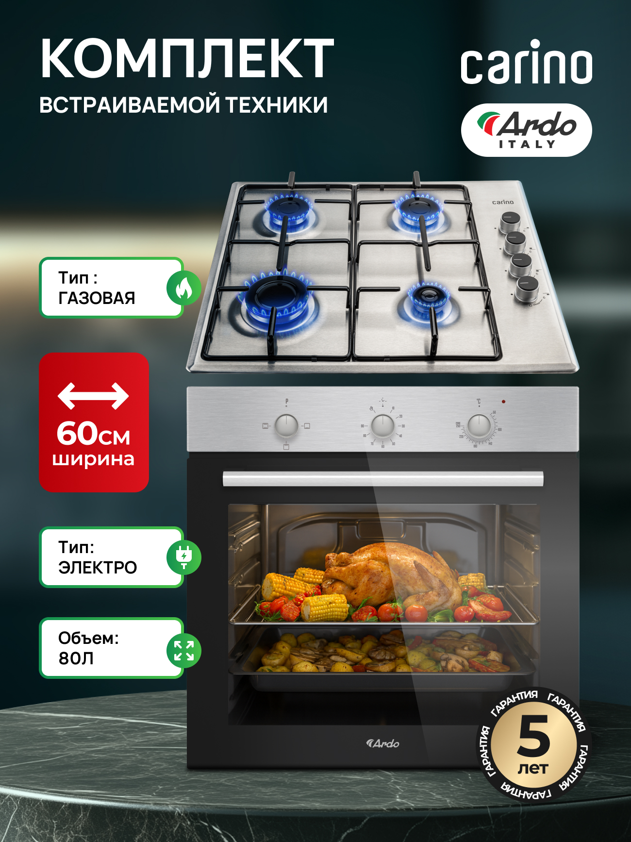 Завершите образ своей кухни с готовым комплектом премиум-класса, где умная газовая панель CARINO встречает многофункциональный духовой шкаф ARDO. Этот дуэт создан для вдохновения: он сочетает передовые технологии, безупречную безопасность и элегантный дизайн, который интегрируется в любое пространство.