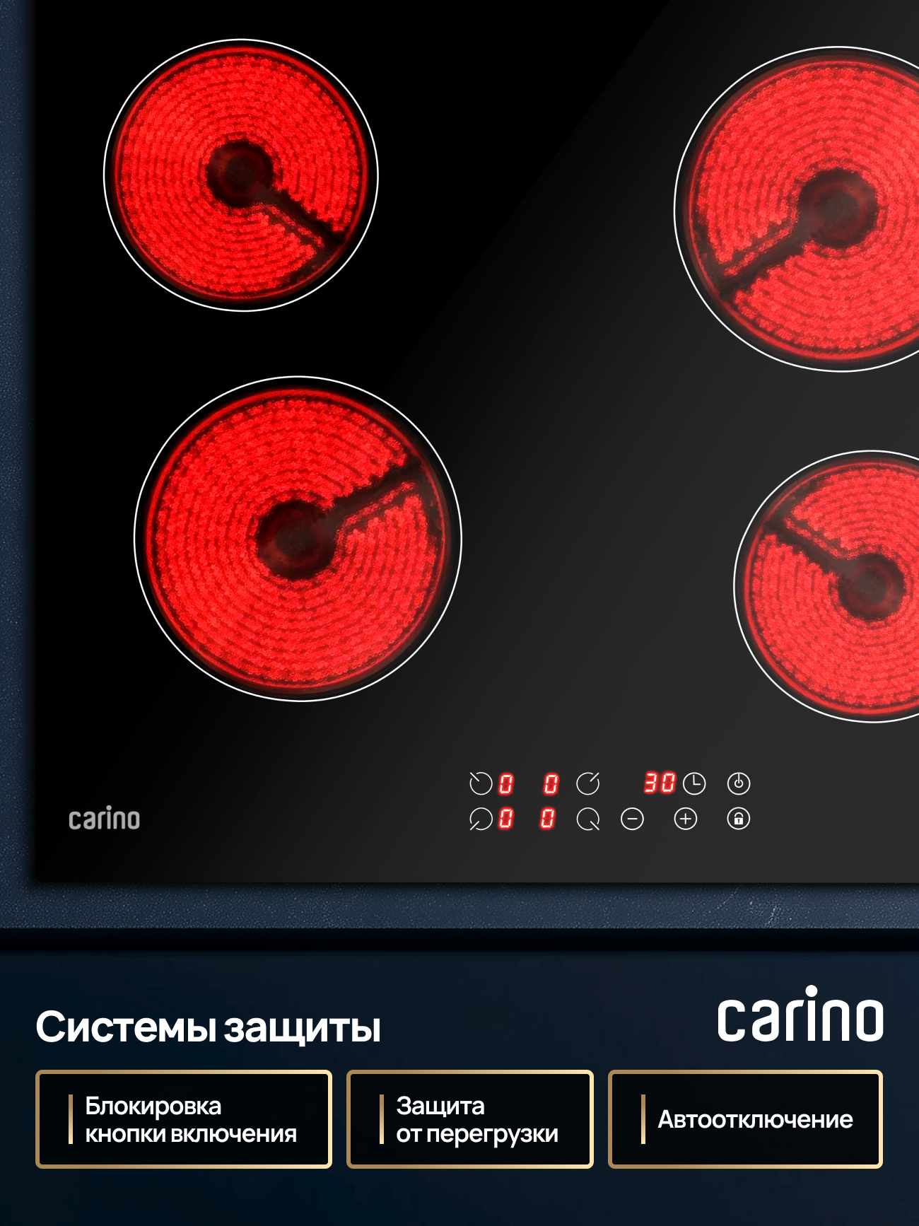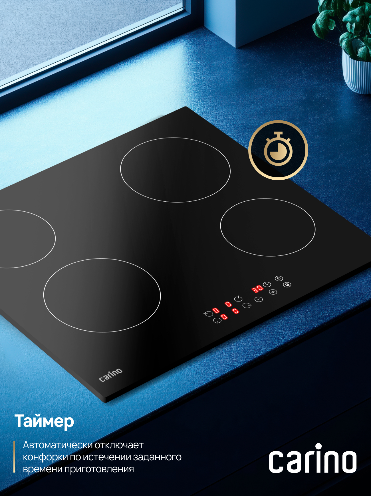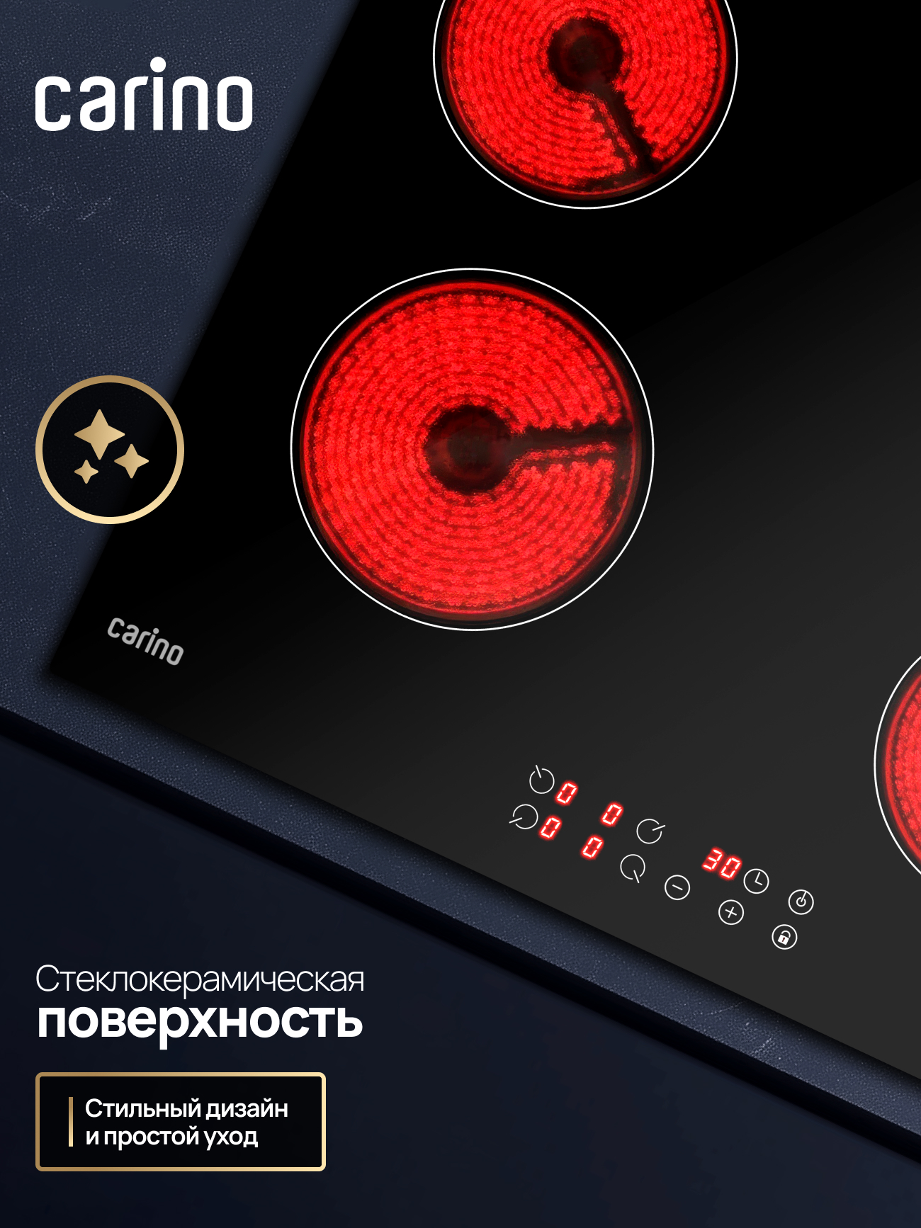 Электрическая варочная панель CARINO CH60D14B011 — это воплощение стиля и удобства. Четыре конфорки Hi-Light с быстрым нагревом и гибкой регулировкой мощности обеспечат идеальный температурный контроль для любого рецепта. Гладкая стеклокерамическая поверхность не только выглядит безупречно, но и невероятно практична: за ней легко ухаживать, а благодаря индикаторам остаточного тепла вы всегда в безопасности. Больше никаких открытого огня или газа — только чистая эффективность.