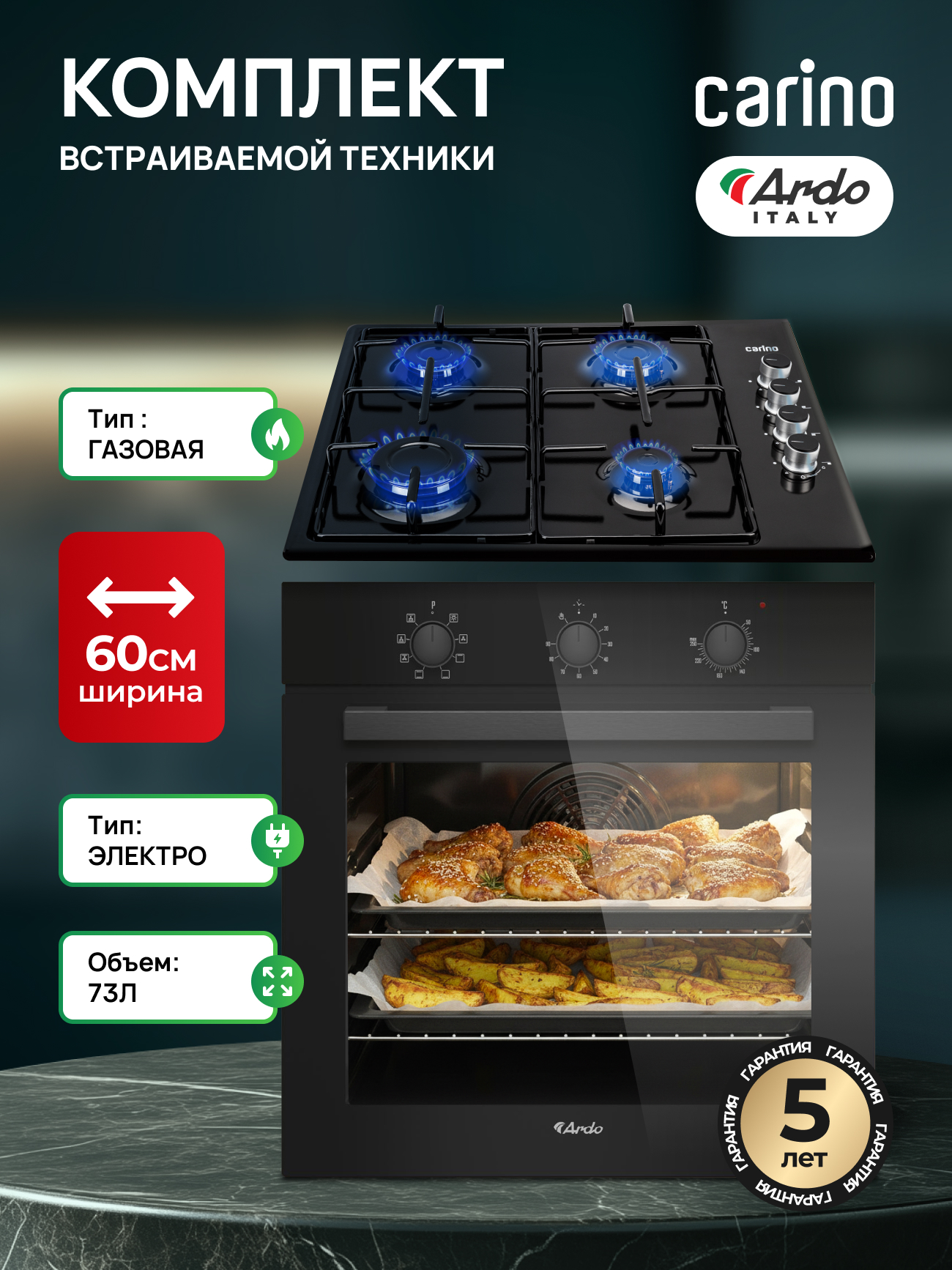 Комплект бытовой техники ARDO/CARINO M18MB2B401: Мощный газ и интеллектуальная электрика