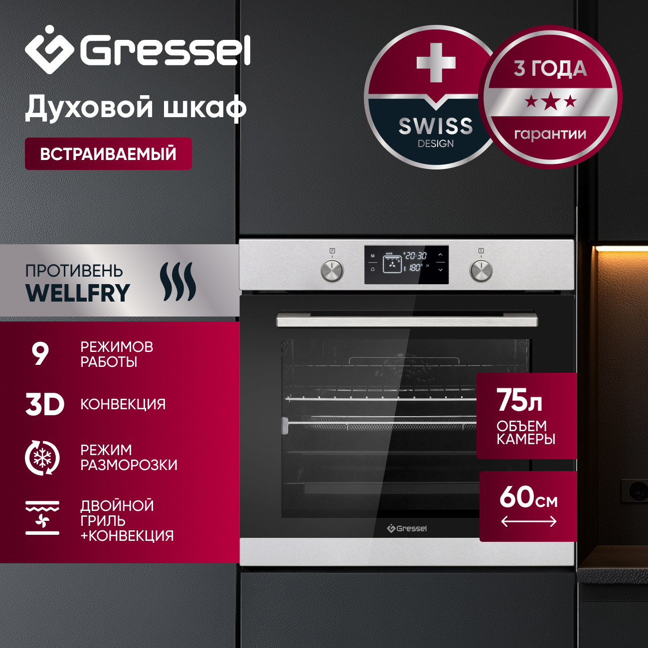 Глубина духового шкафа