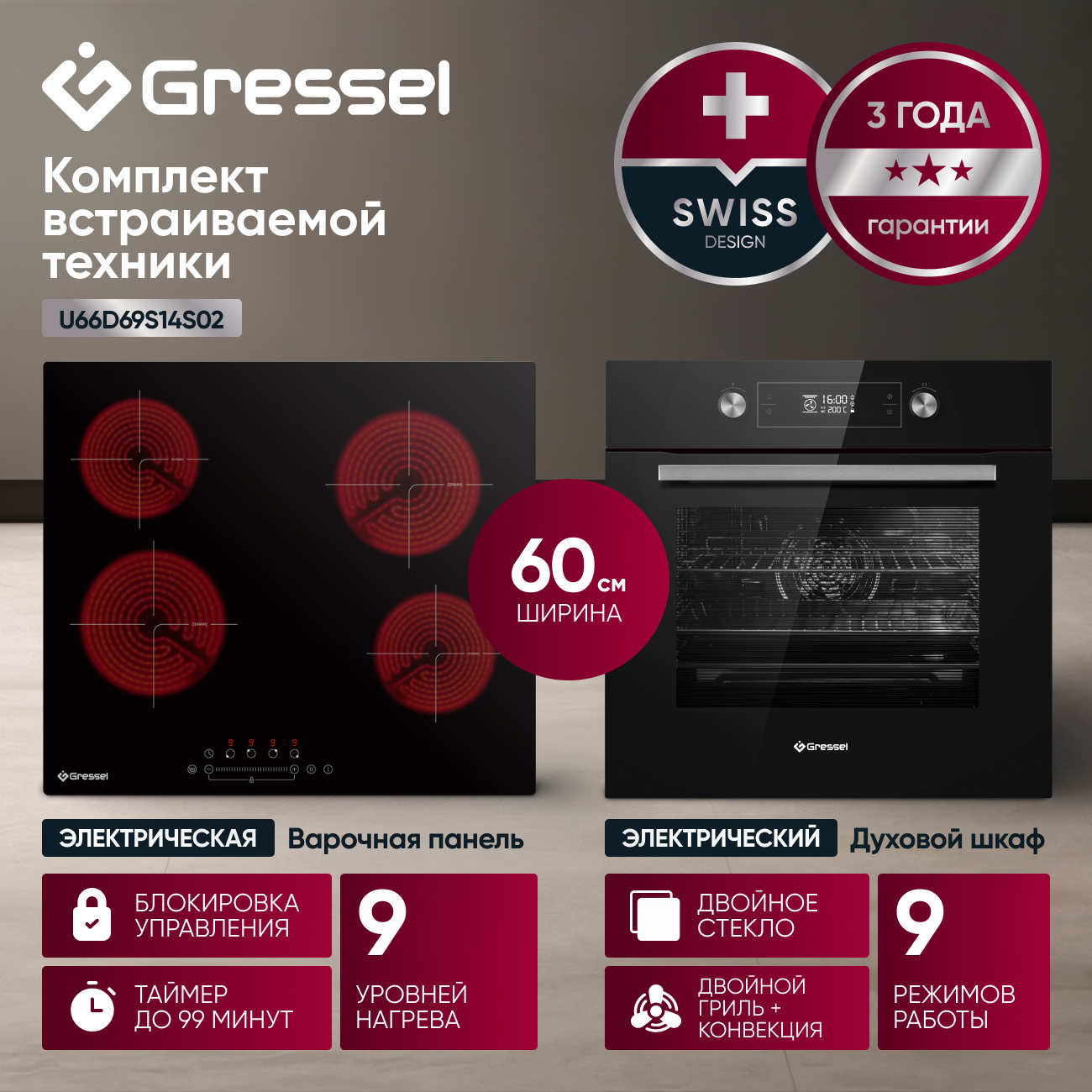 Глубина духового шкафа