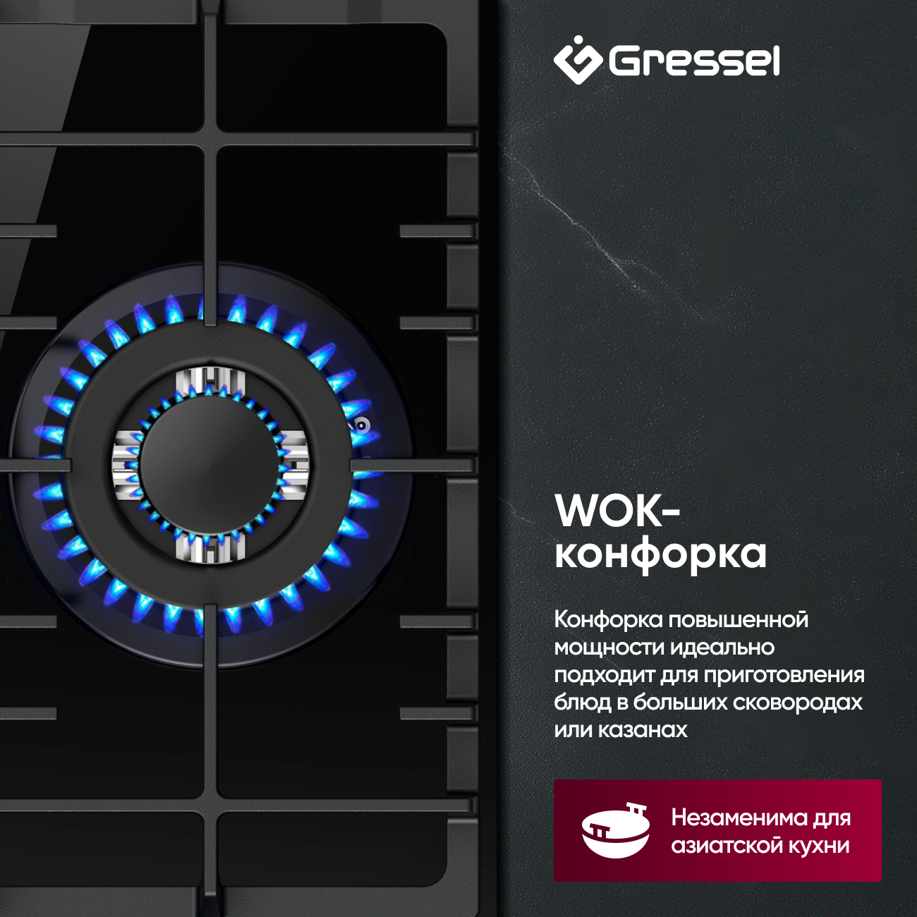 Газовая варочная панель U45H35S001 с 3 конфорками, включая WOK, позволяет готовить с высокой мощностью и точностью. Чугунные решетки, автоматический розжиг и система газ-контроля обеспечивают надежность и долговечность.