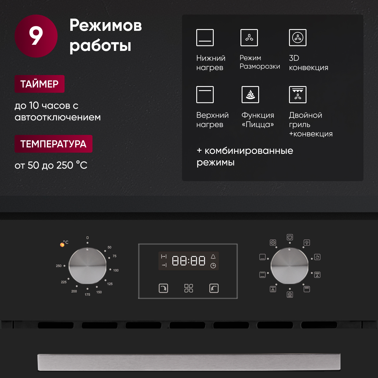 Духовой шкаф шириной 45 см оснащён 9 функциями, включая гриль, конвекцию и разморозку. Современный цифровой таймер и автоотключение делают процесс готовки максимально комфортным. Черное стекло добавляет изысканности дизайну.