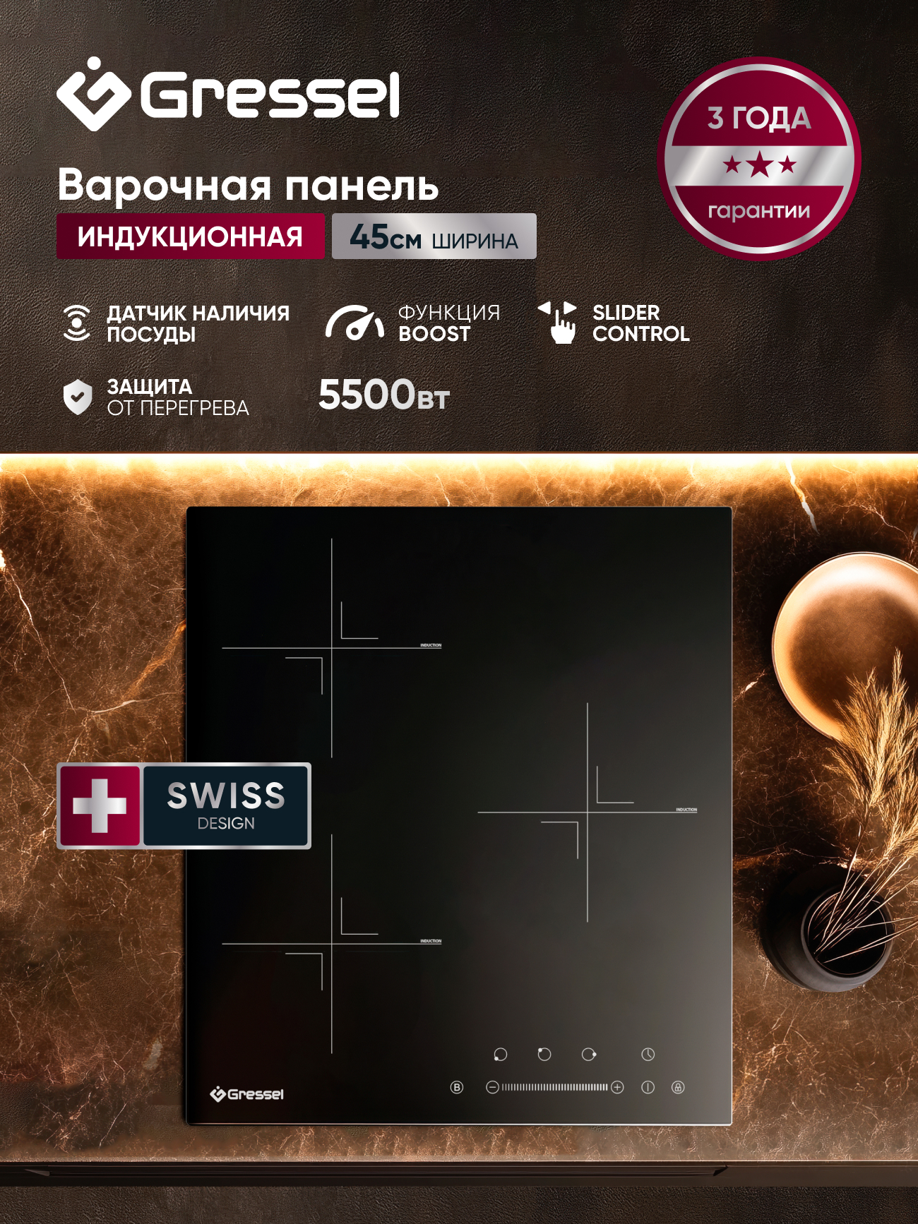 Индукционная варочная панель U45I73S001 оснащена тремя зонами нагрева с функцией Booster, которая обеспечивает быстрый разогрев. Сенсорное управление слайдерного типа позволяет точно регулировать мощность, предусмотрен таймер на каждую конфорку, индикаторы остаточного тепла и блокировка от детей. Поверхность выполнена из прочного закалённого стекла, которое легко очищается после готовки. Благодаря компактным размерам панель удобно разместить даже в кухне с ограниченным пространством. Этот комплект подойдёт тем, кто ценит современный функционал, безопасность и удобство в повседневном использовании.