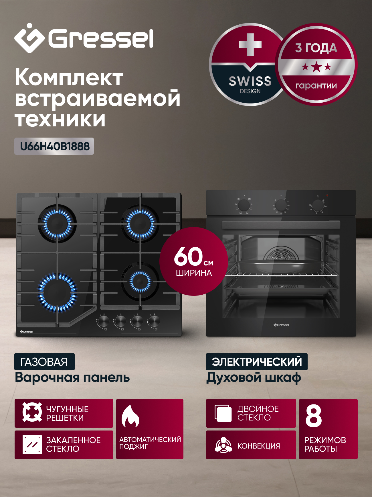 Комплект бытовой техники GRESSEL U66H40B1888 (U6EB18000/U60H40S088)