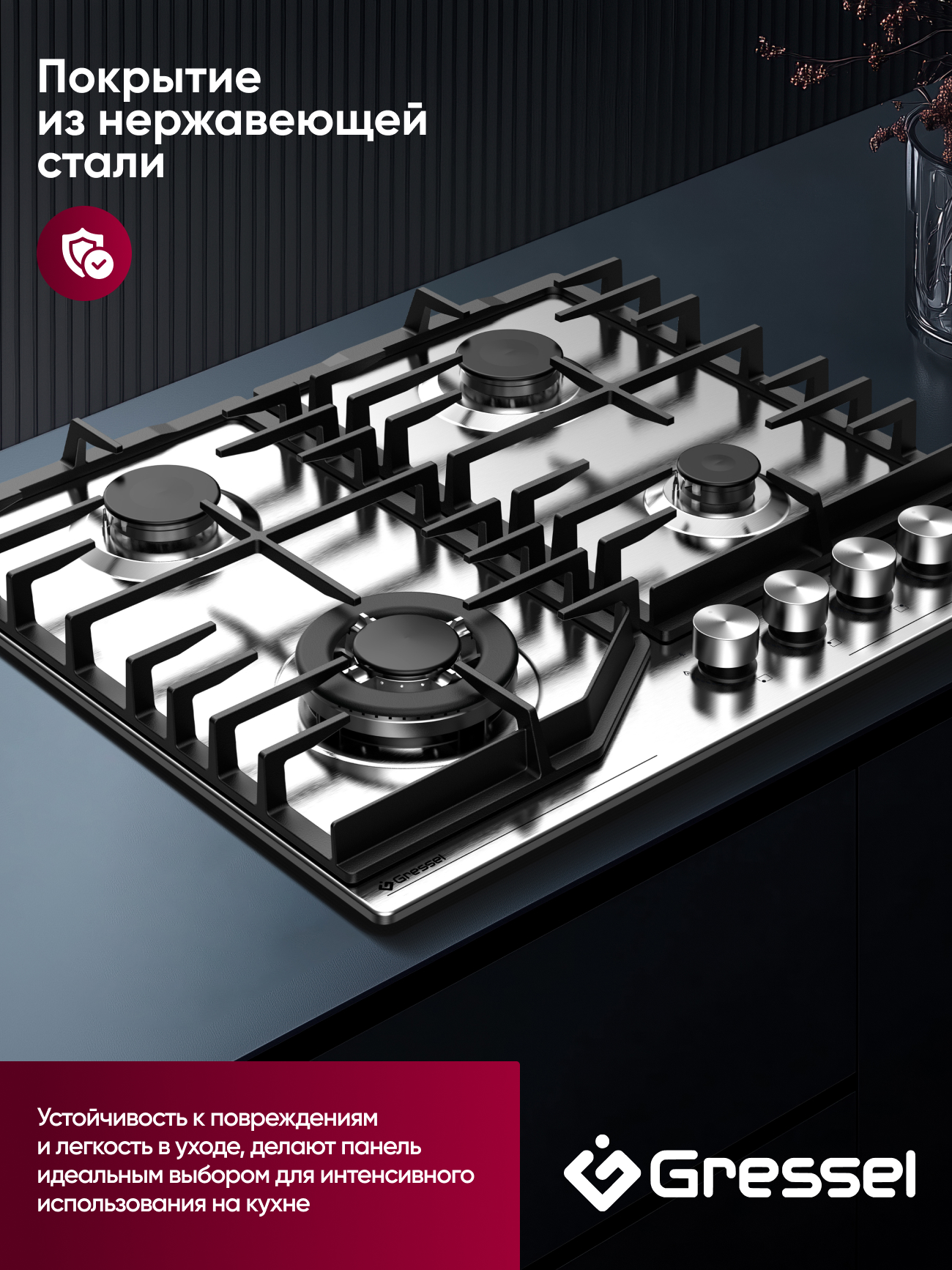 Газовая варочная панель U60V41M011 выполнена из нержавеющей стали и оснащена четырьмя конфорками, включая мощную WOK-конфорку для интенсивного нагрева. Остальные конфорки различаются по мощности и подходят для разных задач: от быстрого кипячения до медленного тушения. Поверхность устойчива к царапинам, чугунные решётки обеспечивают устойчивость посуды, встроенный электроподжиг упрощает включение, а система газ-контроля автоматически перекрывает подачу газа при затухании пламени. Комплект подойдёт тем, кто ищет надёжную технику с простым управлением, прочными материалами и продуманным функционалом.
