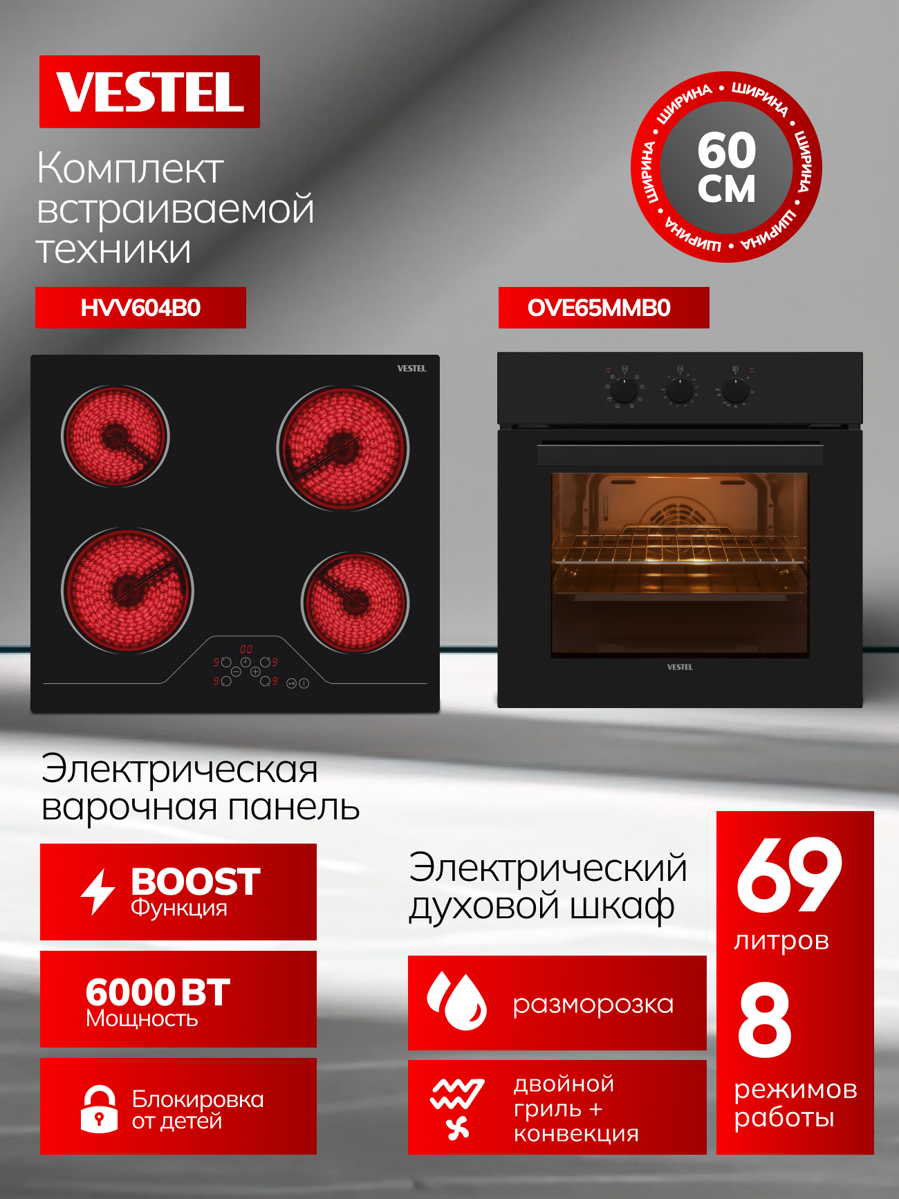 Комплект встраиваемой техники Vestel SV66E65MV604B0 — это функциональное и стильное решение для оснащения современной кухни.