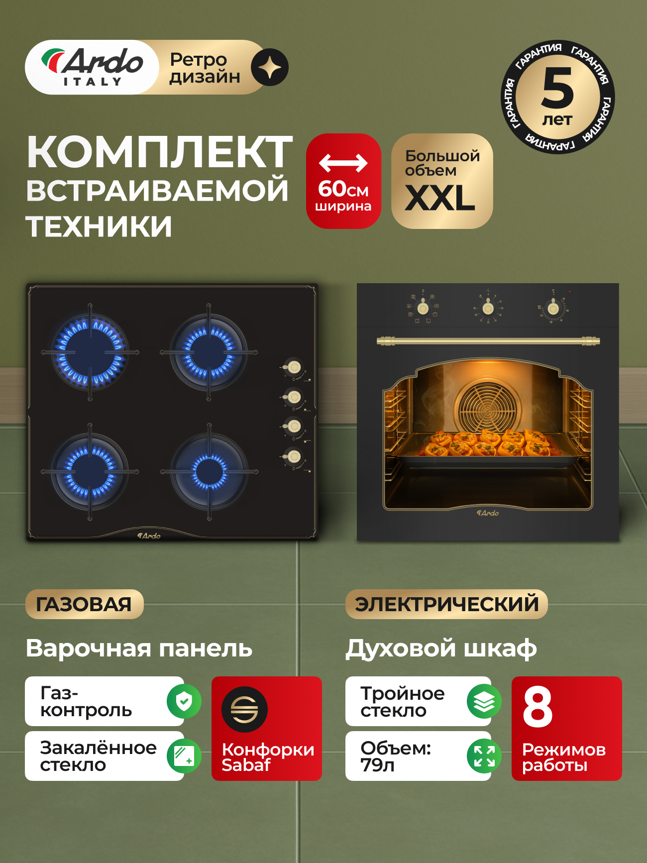 Этот комплект, состоящий из электрического духового шкафа BO58RA2 и газовой варочной панели GHS64GRB2 из закаленного стекла, идеально подходит для тех, кто ценит скорость приготовления и разнообразие функций. Духовка оснащена несколькими режимами нагрева, включая конвекцию, что позволяет гибко подходить к процессу выпечки, запекания и гриля. Специальное покрытие внутренней камеры облегчает её очистку, а тройное стекло дверцы снижает нагрев внешней поверхности. Варочная панель из закаленного стекла отличается строгим и современным дизайном, а боковое управление очень удобно в использовании. Гладкая поверхность панели легко очищается, а её стильное сочетание с духовкой создаёт гармоничный и цельный вид. Этот комплект станет отличным выбором для тех, кто ценит чёткие линии, удобство и простоту ухода.