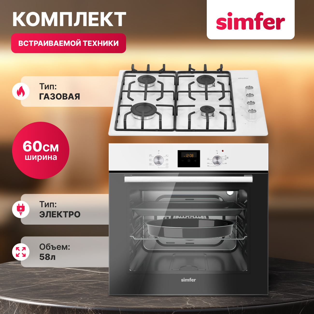 Встраиваемый набор Simfer H60Q40W570, B6EW56070 - комплект, состоящий из газовой варочной поверхности и электрического духового шкафа, созданный для того, чтобы облегчить жизнь каждой хозяйке в приготовлении самых разнообразных блюд. И для тех, кто мечтает о технике, гармонично сочетающейся с элементами кухни. Для того, чтобы воплотить свои кулинарные фантазии предусмотрены четыре газовые конфорки разные по диаметру и мощности пламени в них, располагающиеся на рабочей поверхности из эмалированной стали. Удобное управление и функция электроподжиг значительно упрощает работу с панелью. А разнообразные режимы в духовом шкафу дадут вам возможность выбора оптимального способа приготовления для каждого блюда. Контролировать этот процесс, благодаря освещению камеры, вы сможете, не открывая дверцу духовки. Готовьте вкусную еду и проводите семейные ужины в комфортной и уютной обстановке!