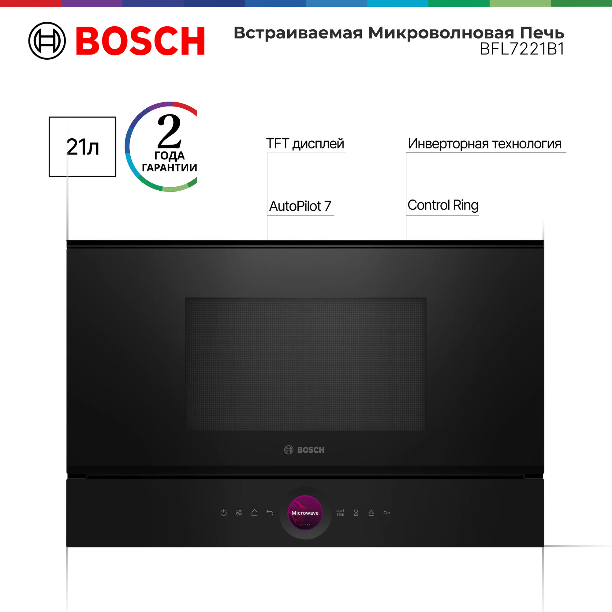 • Функция Microwave Boost: быстрый и легкий разогрев. • Цифровое кольцо управления: простой и инновационный способ выбирать настройки духовки. • Сенсорный TFT-дисплей: простое управление благодаря инновационному цифровому кольцу управления и сенсорному TFT-дисплею. • AutoPilot 7: каждое блюдо получается идеальным благодаря 7 предустановленным автоматическим программам. • Внутренняя поверхность из нержавеющей стали: легко моется благодаря гладкой поверхности и отсутствию острых краев. • Быстрый старт: согрейте вашу еду по нажатию всего лишь одной кнопки.Микроволны и режим нагрева: • Макс. Мощность: 900 Вт; 5 настроек мощности микроволн: 90 Вт, 180 Вт, 360 Вт, 600 Вт, максимальная мощность • Умная инвертерная технология: максимальная выходная мощность будет ограничена 600 Вт при долгом использовании устройства • Камера из нержавеющей стали со стеклянной нижней поверхностью • Сенсорное управление • Помощь в уборке (программа)