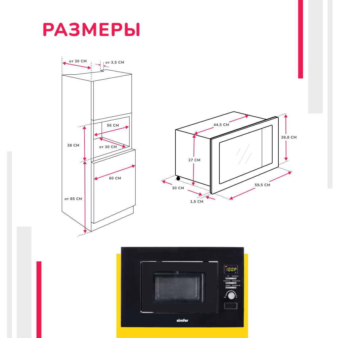 Благодаря своим размерам (30х59,5х38 см) и весу (всего 12 кг), эта микроволновая печь легко впишется в любой интерьер, не занимая много места на вашей кухне. А объем в 22 литра позволит приготовить или разогреть достаточно большое количество еды на всю семью.