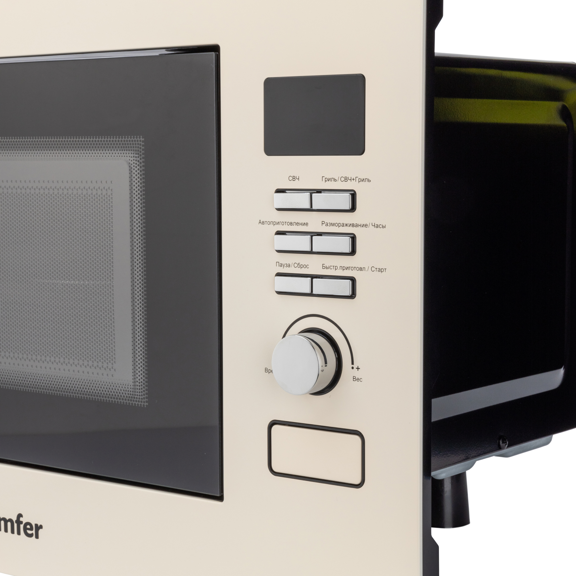 Металлическая решетка - 1 шт., стеклянный противень - 1 шт., рамка для встраивания, высокая решетка для гриля, кабель с вилкой, инструкция по эксплуатации, гарантийный талон