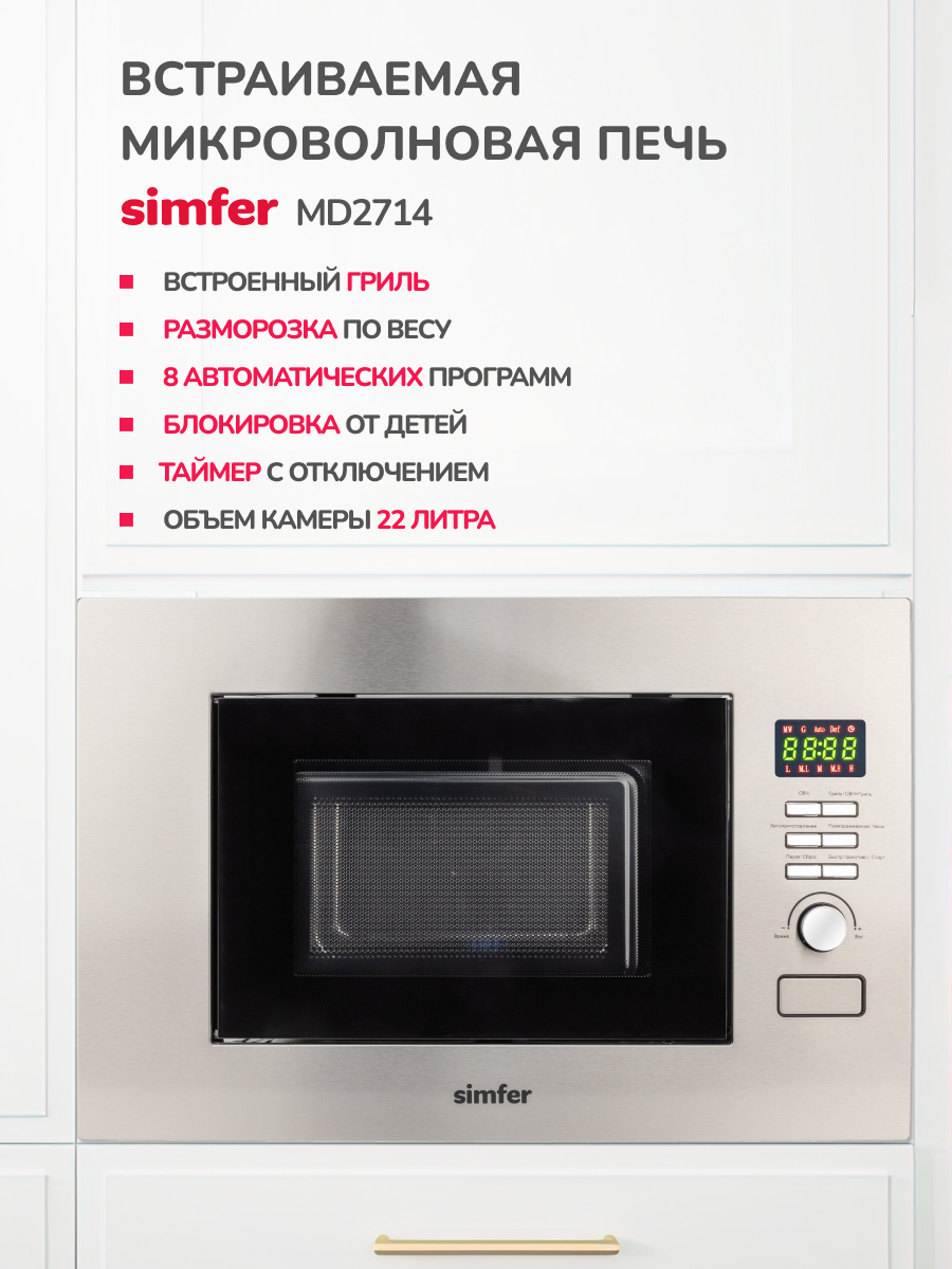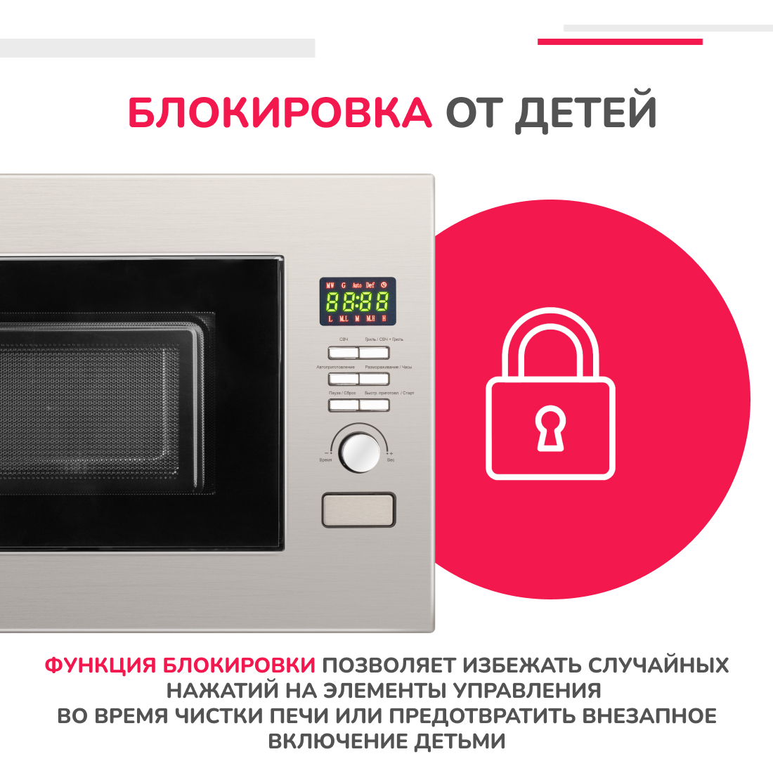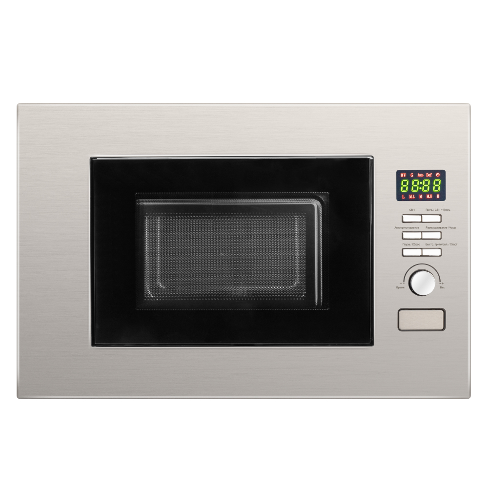 Металлическая решетка - 1 шт., стеклянный противень - 1 шт., рамка для встраивания, высокая решетка для гриля, кабель с вилкой, инструкция по эксплуатации, гарантийный талон