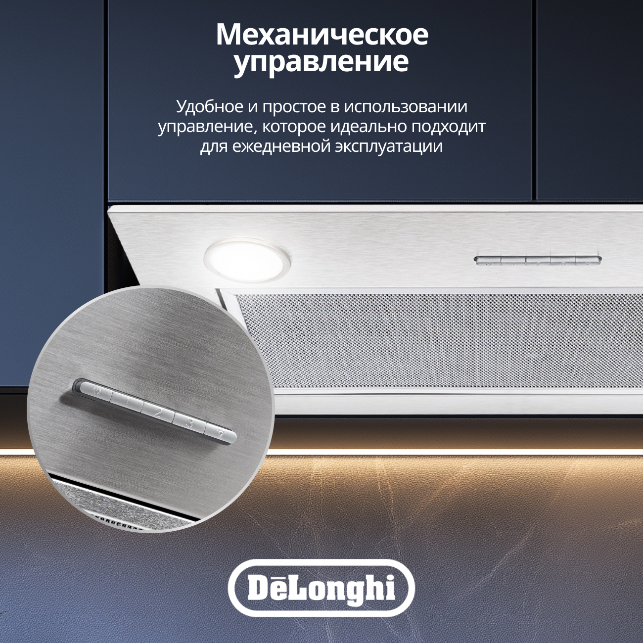 Управление вытяжкой - механическое, с помощью кнопочной панели и трех доступных скоростей. Вытяжка предназначена для установки в навесной шкаф.