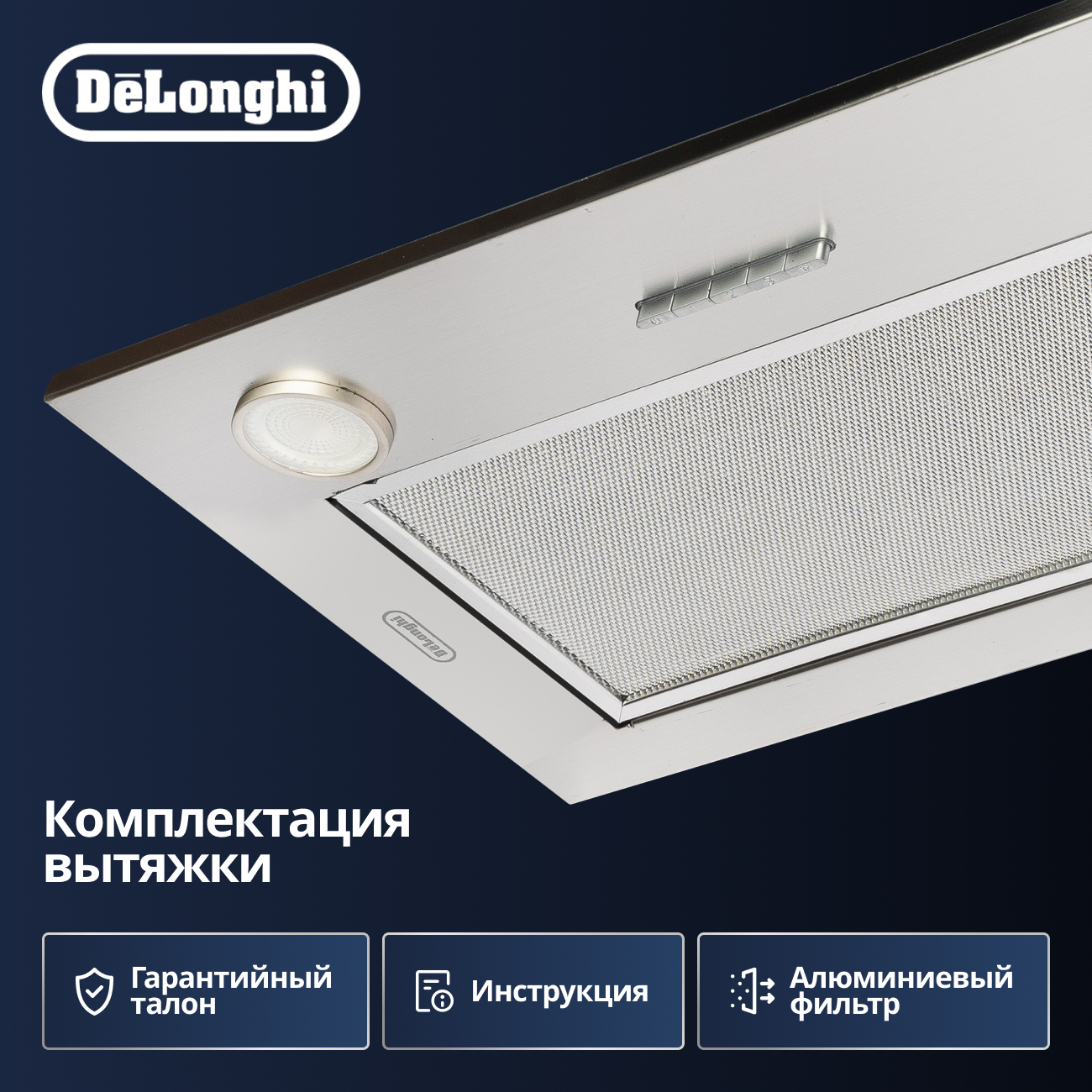 Вес вытяжки - 7.3 кг. Угольный фильтр (фильтр тонкой очистки) приобретается отдельно.