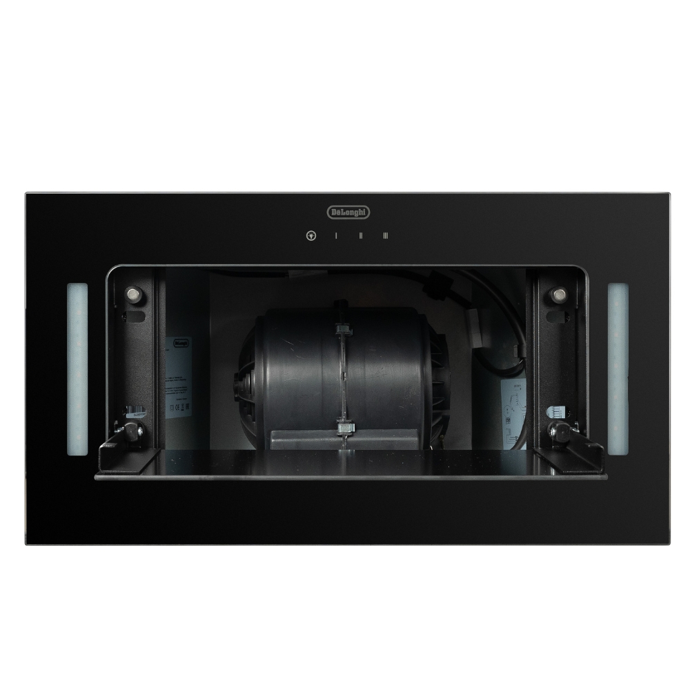 Встраиваемая вытяжка от известного производителя De’Longhi предназначена для установки в шкафу. Она имеет 2 режима работы: отвод и циркуляцию воздуха. Жировой фильтр эффективно улавливает частицы жира и предотвращает их оседание на мебели и стенах. Электронное управление интуитивно понятное и обеспечивает комфорт использования. В качестве источника света используется галогенная лампа, которая обеспечивает хорошее освещение рабочей поверхности.
