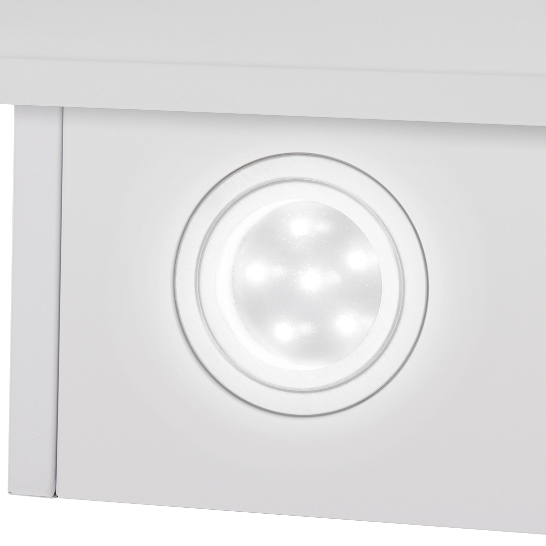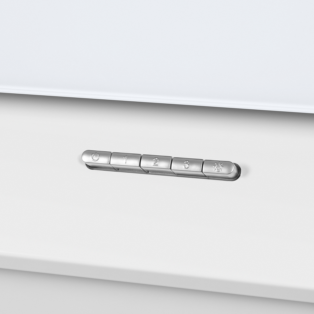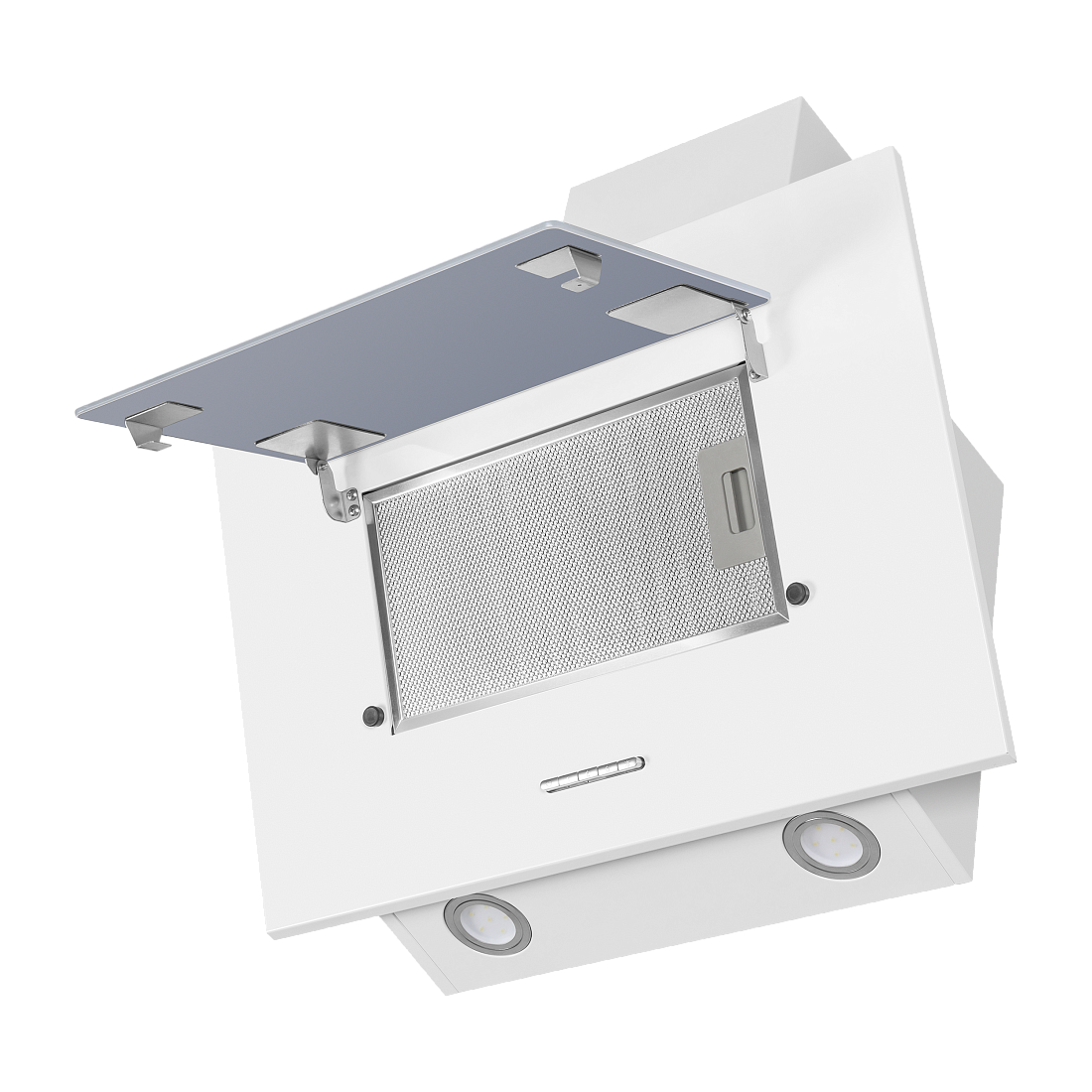 Управление Кнопочное управление. 3 скорости на выбор. Особенности Периметрическое всасывание. Алюминиевый фильтр находится за тонированным стеклом, что придает вытяжке эстетический вид. Мощность мотора и максимальная производительность Полная потребляемая мощность мотора 102 Вт, максимальная производительность 650 м3/ч. Данная вытяжка может работать на кухне площадью до 25 м2. Уровень шума 47 Дб. Освещение Вытяжка комплектуется энергосберегающим LED освещением 2*1 Вт. Цвет Белый Монтаж Вытяжка предназначена для настенного монтажа.