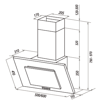 Вытяжка предназначена для настенного монтажа.