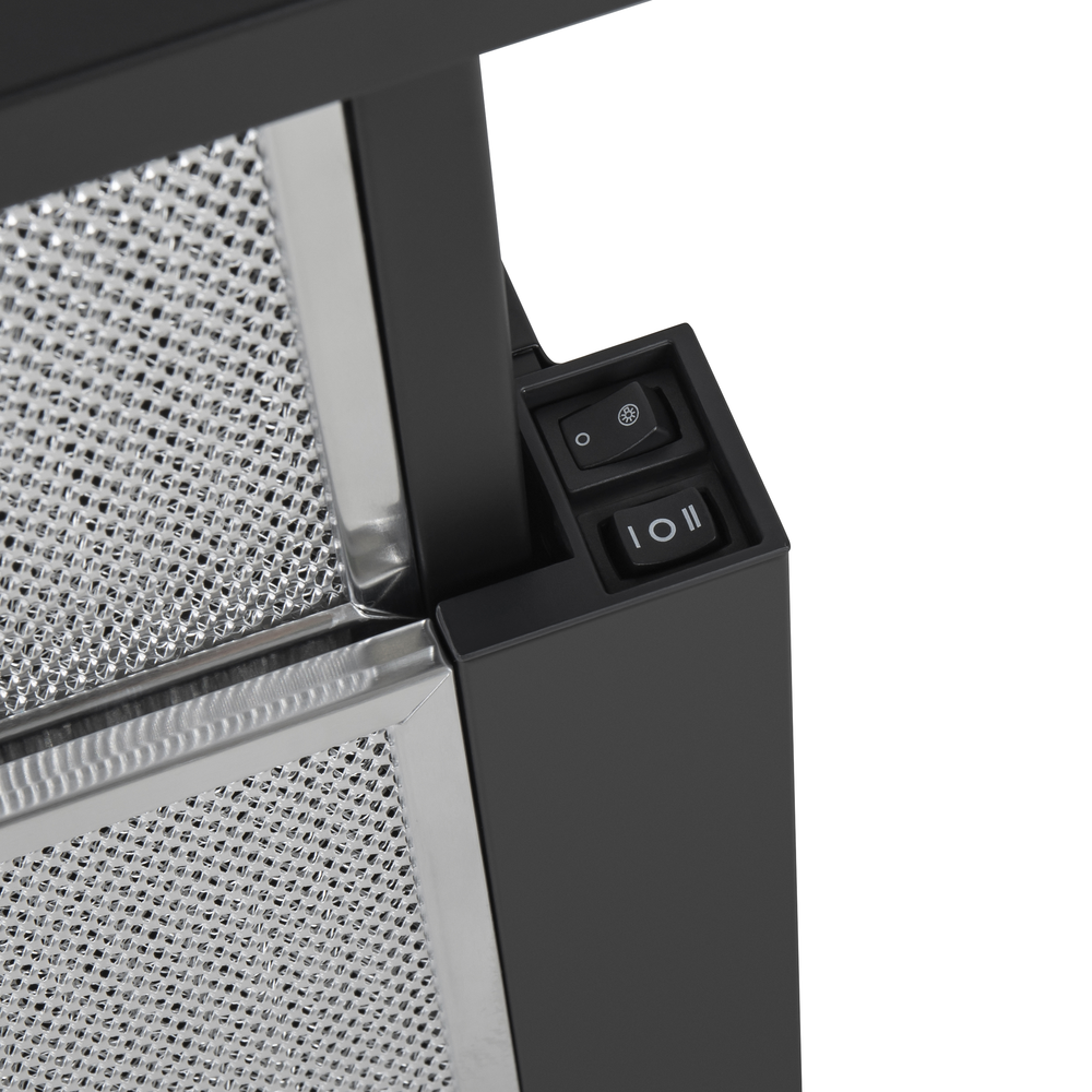 Телескопическая жировая решетка. Для работы вытяжки необходимо выдвинуть жировую решетку, данная конструктивная особенность создает широкую рабочую поверхность, что позволяет эффективно производить забор воздуха от плиты.