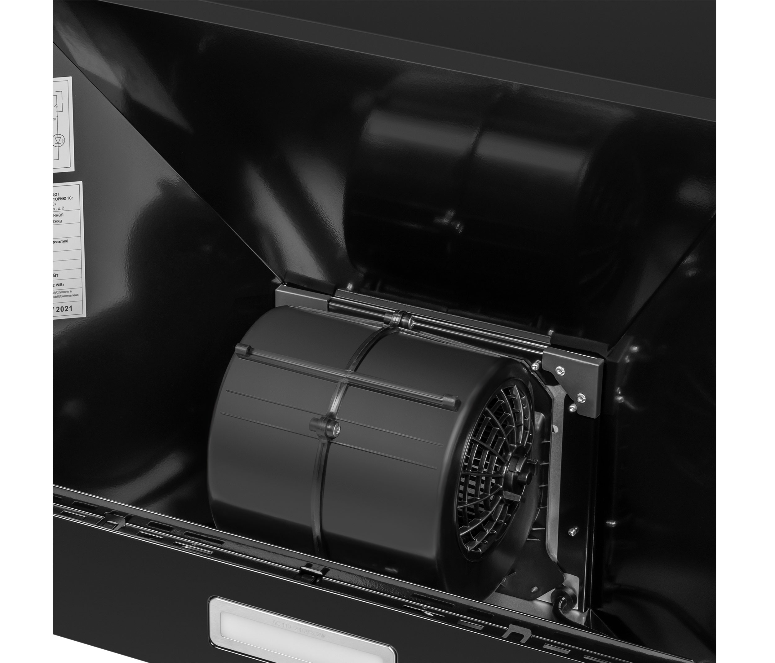 Вытяжка выполнена из нержавеющей стали с эмалевым покрытием черного цвета. Большая площадь рабочей зоны, состоящей из двух многослойных жироулавливающих фильтров, позволяет эффективно захватывать загрязненный воздух на кухне большой площади (до 20 кв.м). Фильтры легко снимаются и в случае необходимости очистки полностью разбираются.