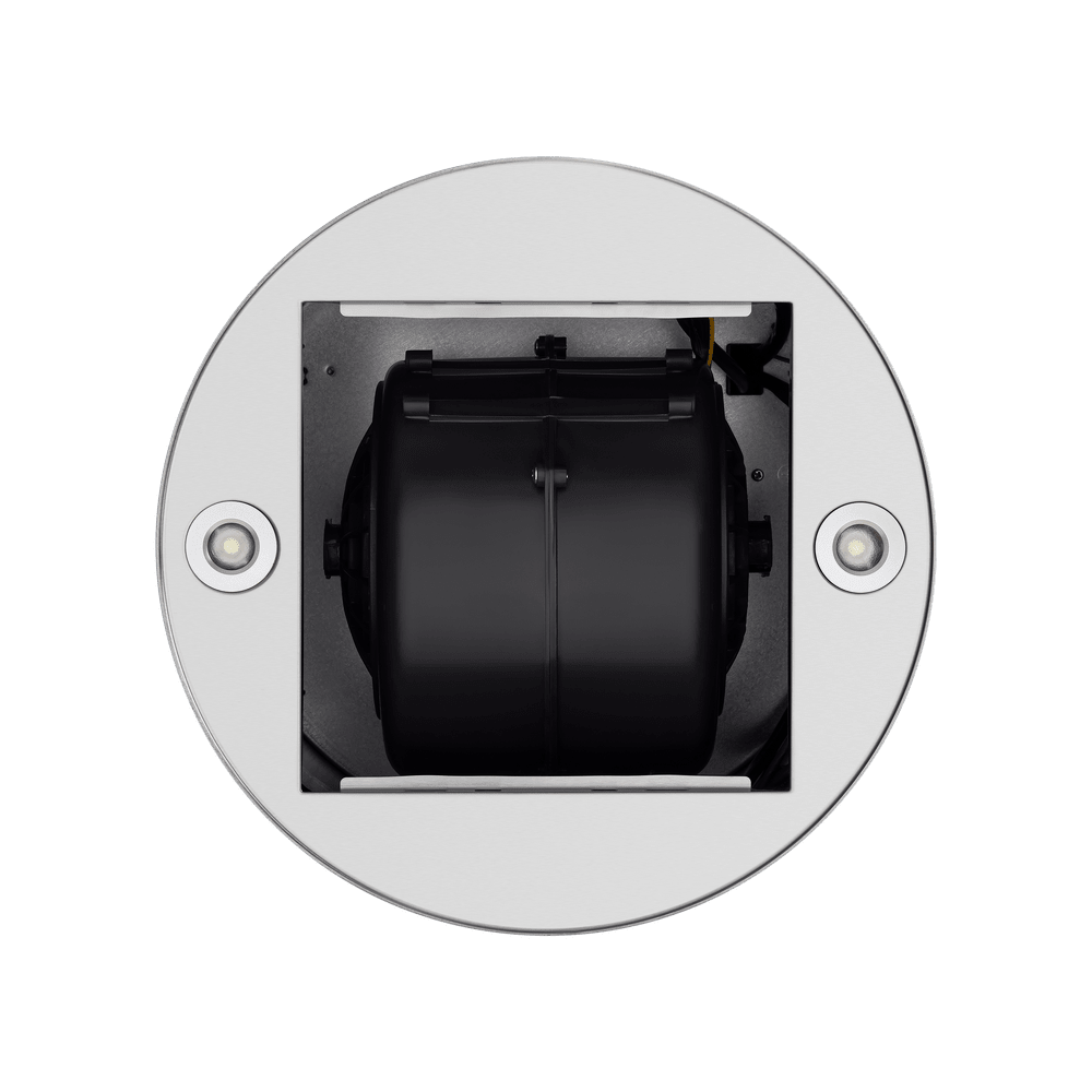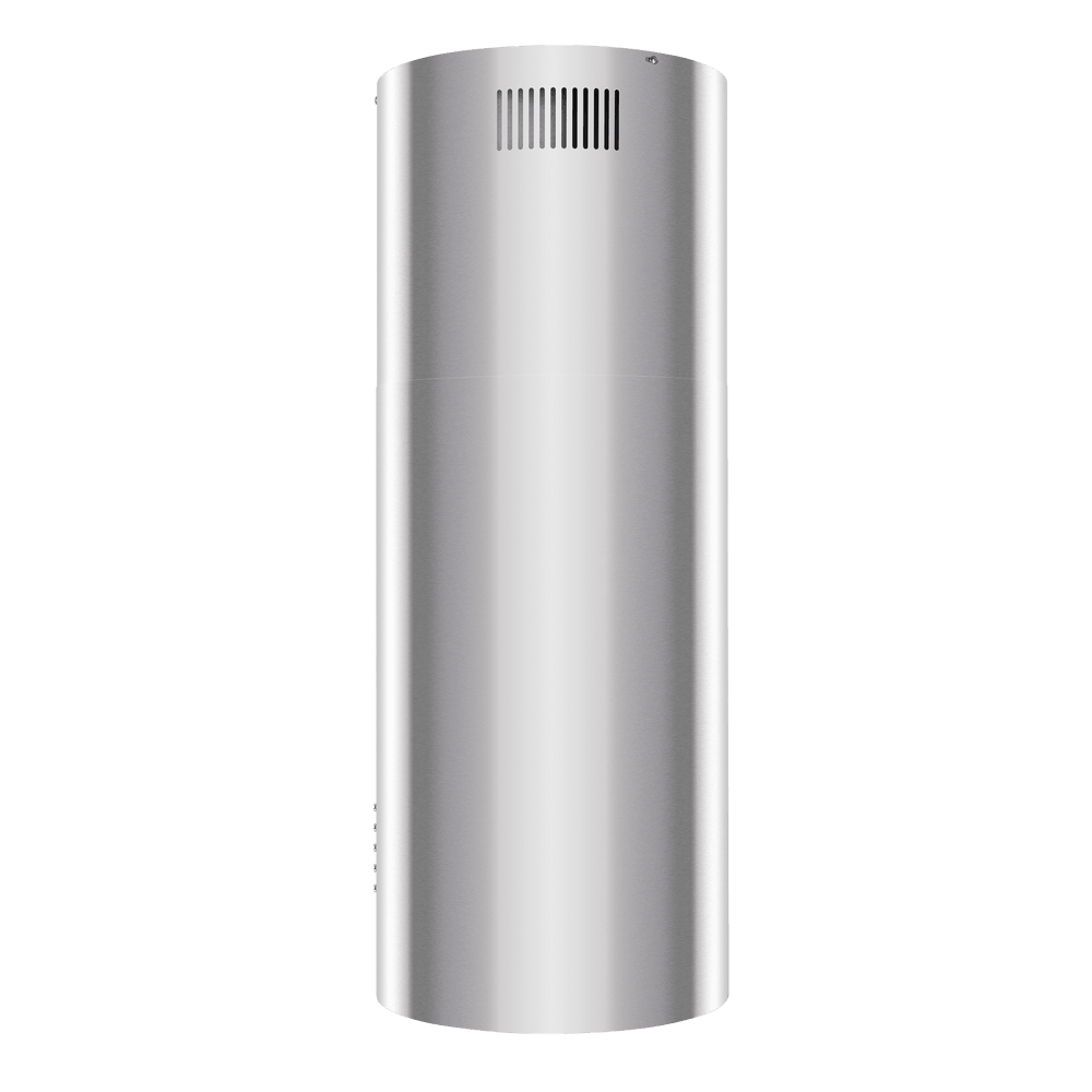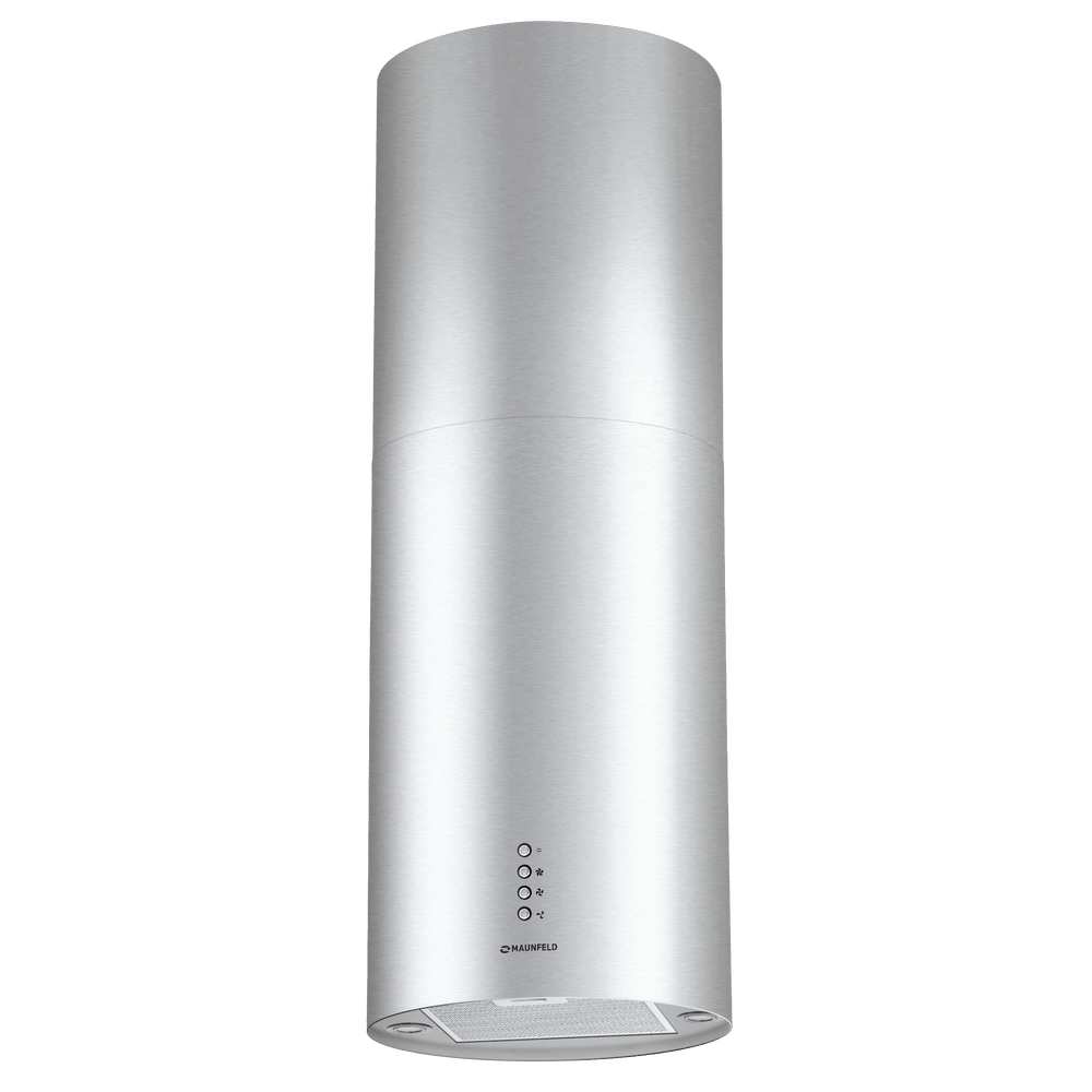 Корпус цилиндрической формы монтируется на потолок над варочной поверхностью. В нижнем торце вытяжки расположен специальный многослойный жироулавливающий фильтр, который легко вынимается и полностью разбирается для чистки.