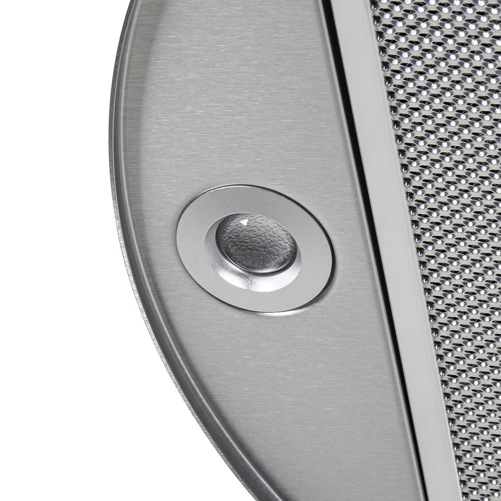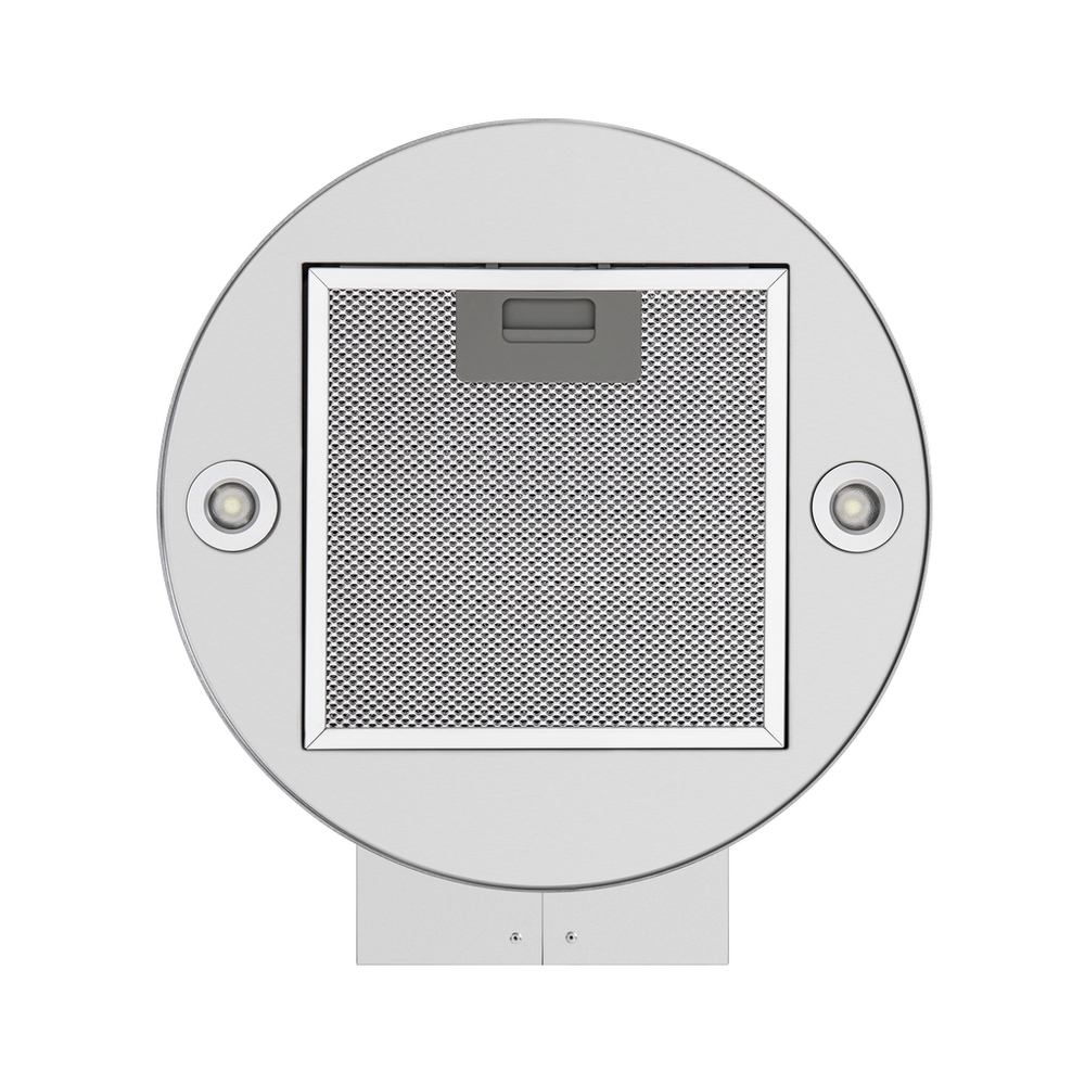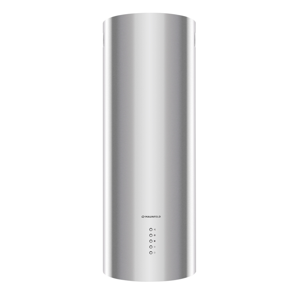 Корпус цилиндрической формы выполнен из матированной нержавеющей стали и устанавливается на стену над поверхностью плиты. Алюминиевый многослойный жироулавливающий фильтр находится в нижнем торце вытяжки.