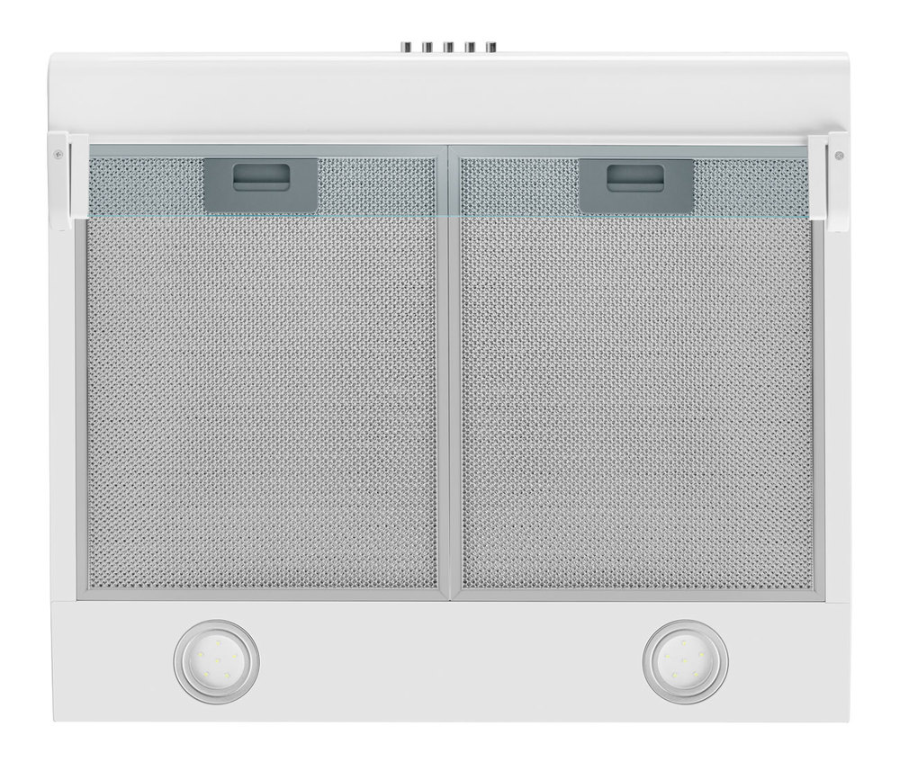Корпус сделан из нержавеющей стали с термостойким покрытием из белой эмали, которое позволяет сохранить внешний вид вытяжки даже при активной эксплуатации. В данной модели установлено 2 алюминиевых жироулавливающих фильтра, которые имеют продолжительный срок службы и эффективно очищают воздух. Они легко снимаются и полностью разбираются для чистки.