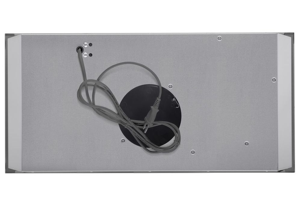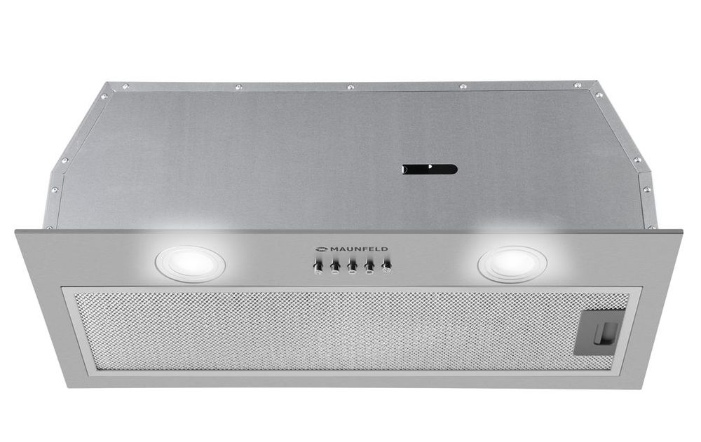 Корпус сделан из нержавеющей стали. На фронтальной панели черного цвета находится съемный многослойный жироулавливающий фильтр, выполненный из алюминия.