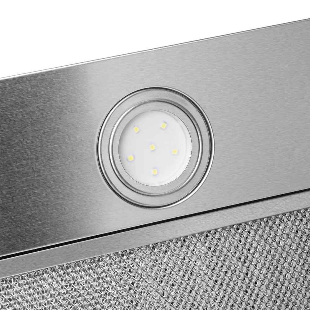 Высокая производительность Благодаря мощному мотору (127 Вт) вытяжка способна очистить 850 м3/час, на вашей кухне всегда будет чистый, свежий воздух. Низкий уровень шума Даже на самом мощном режиме всасывания вытяжка работает достаточно тихо, уровень шума 44 дб. Кнопочное управление дает возможность выбрать одну из 3-х скоростей вентилятора и включить LED-освещение. Два режима фильтрации Работает в двух режимах – отвода (при подключении к системе вентиляции) или рециркуляции (при использовании сменного угольного фильтра). LED Свет направлен не на глаза, а на зону, где выполняется приготовление пищи. Вмонтированная в вытяжку подсветка равномерно освещает поверхность столешницы, формируя приятный рассеивающий эффект. Воздуховод Воздуховод имеет диаметр 150 мм и оснащен антивозвратным клапаном, что не позволяет попадать запахам обратно в вашу кухню.