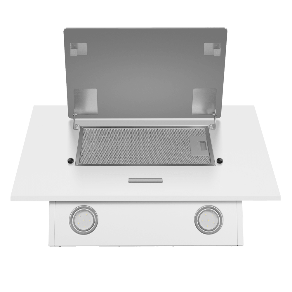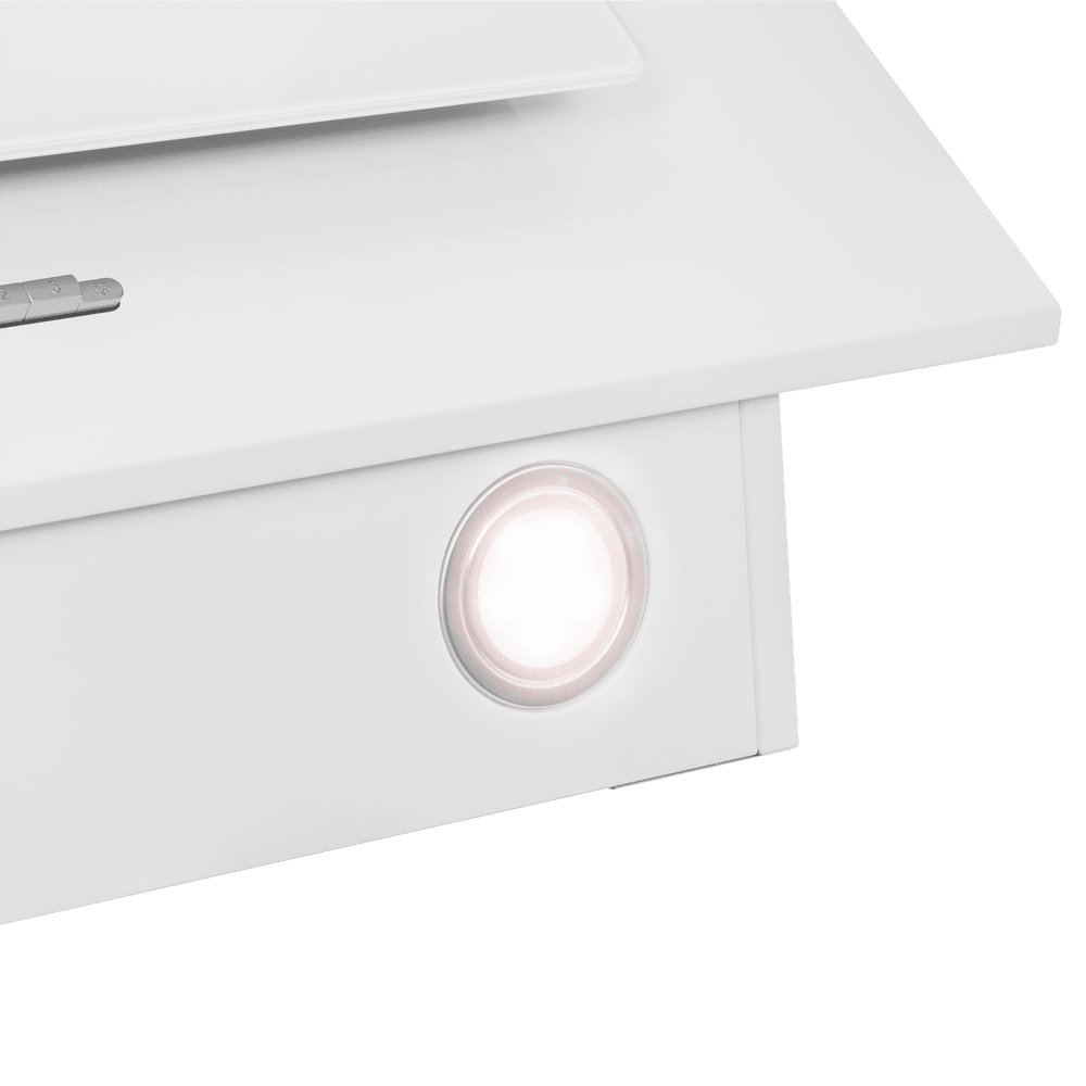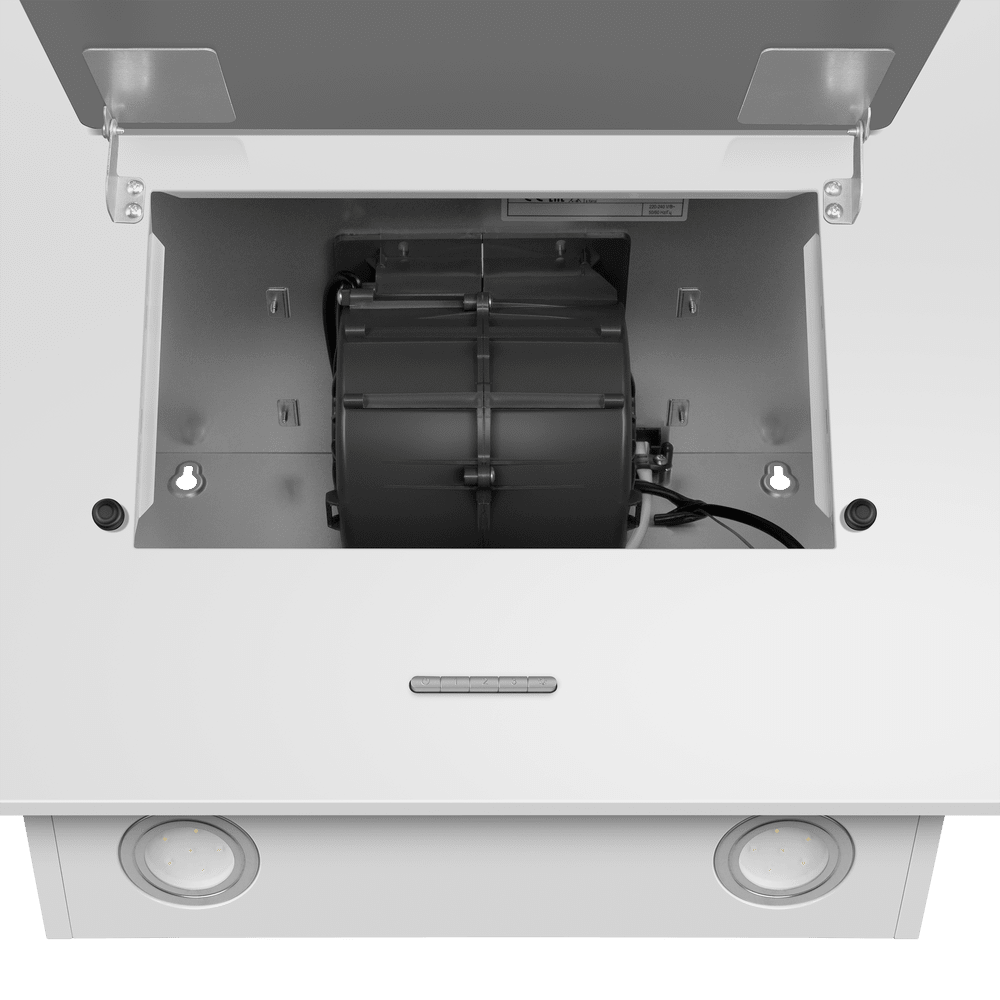 Управление вытяжкой осуществляется при помощи кнопочного механизма. Вы можете выбрать одну из двух скоростей работы и включить освещение. Светодиодная подсветка обеспечивает яркое и комфортное освещение рабочей зоны.