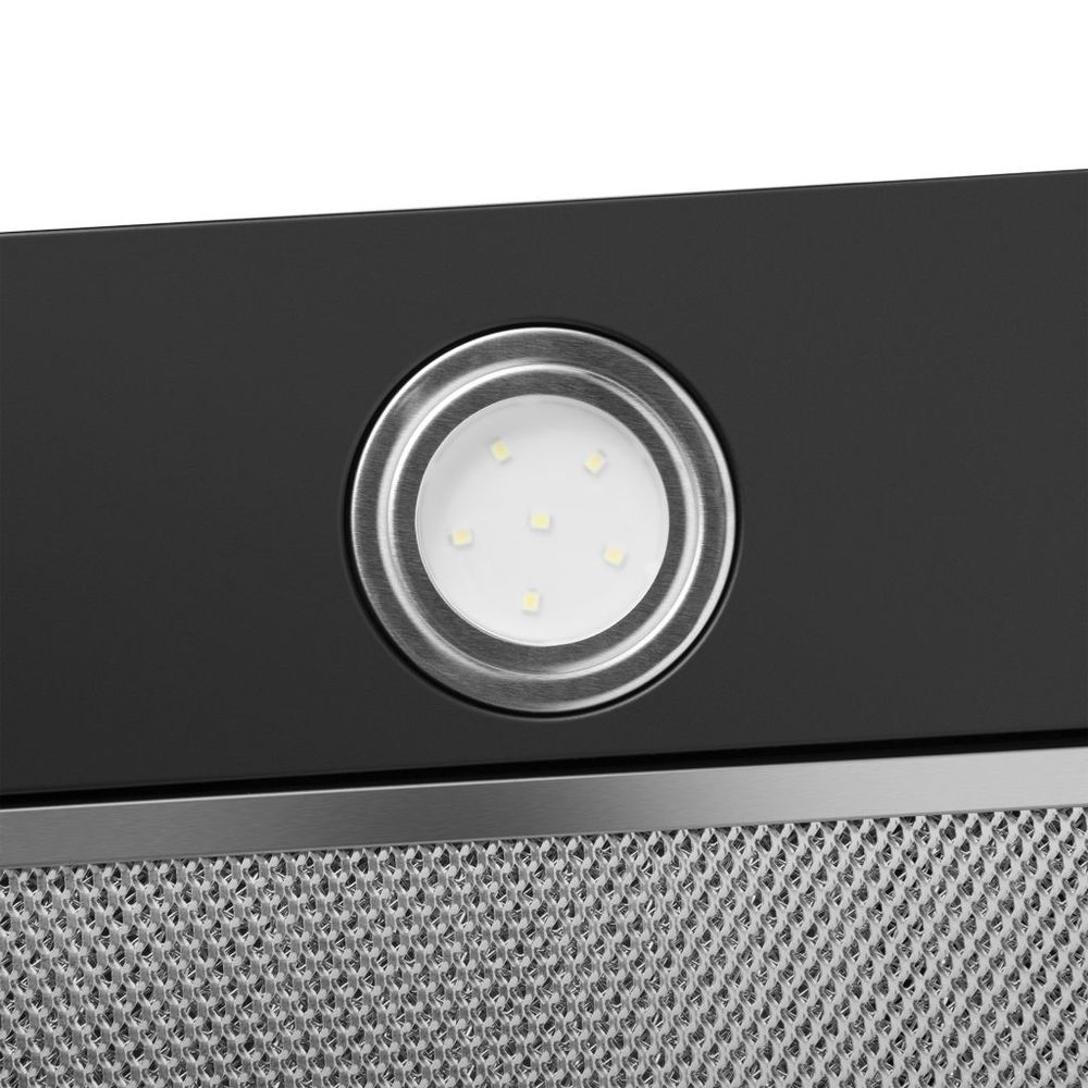 Электронное управление позволяет включить освещение и выбрать одну их 3-х скоростей работы - две стандартные и одна турбо (для быстрой очистки воздуха в экстренных случаях, например, если что-то пригорело). Освещение рабочей поверхности обеспечивается 2-мя LED-лампами по 1 Вт каждая.