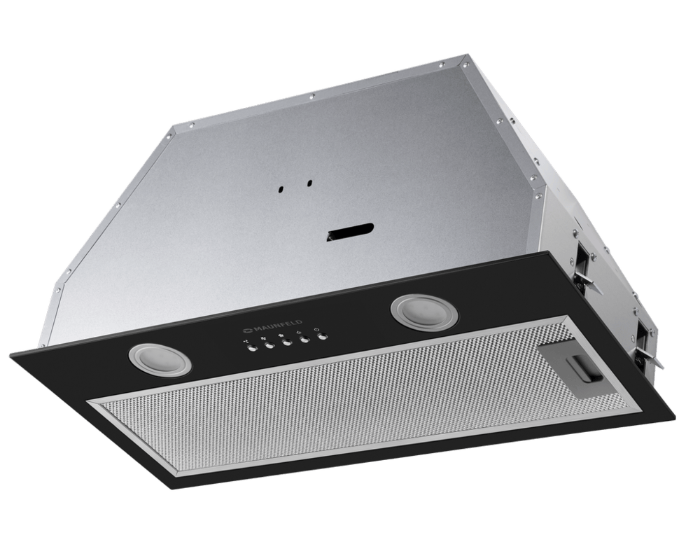 Классическая встраиваемая кухонная вытяжка шириной 60 см подойдет для большой кухни. Модель монтируется в навесной шкаф над поверхностью плиты. Может использоваться для отвода воздуха из помещения при подключении к системе домовой вентиляции или очищать воздух с помощью сменного угольного фильтра.
