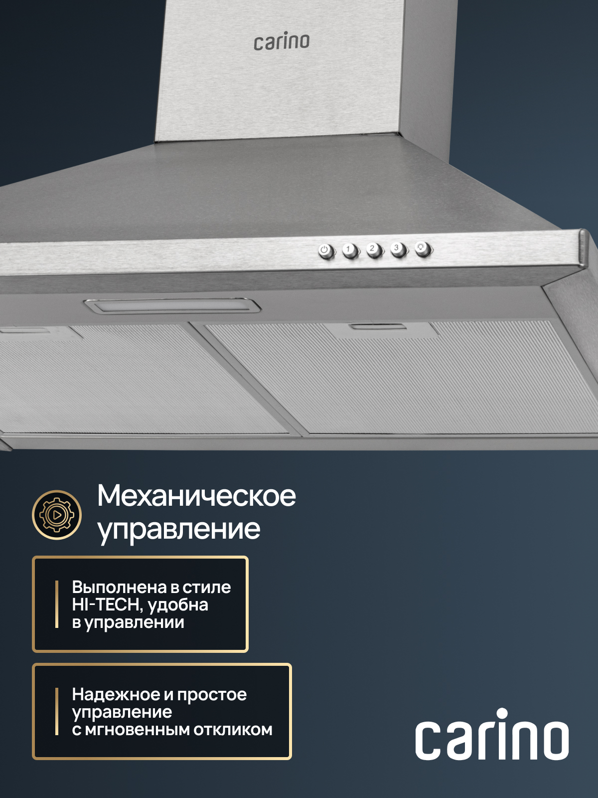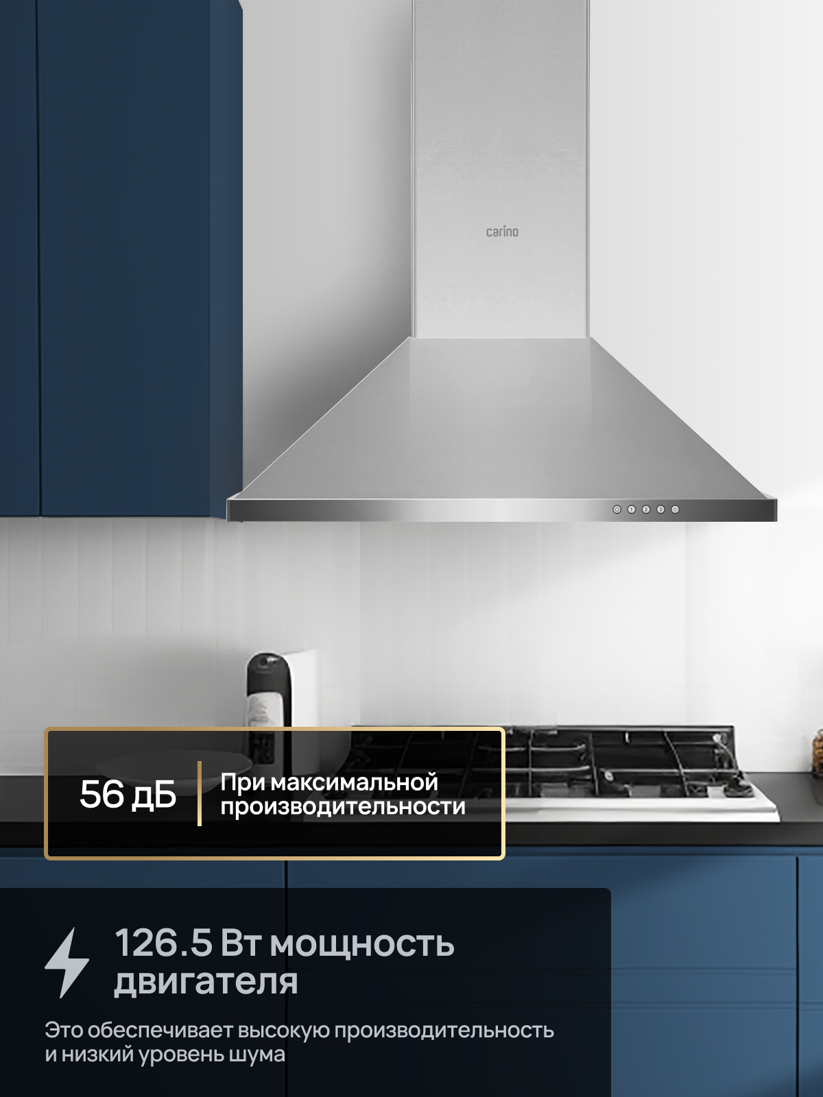 CARINO C8662SM – это надёжность, стиль и производительность в одном устройстве. Современное решение для свежего и чистого воздуха на вашей кухне!