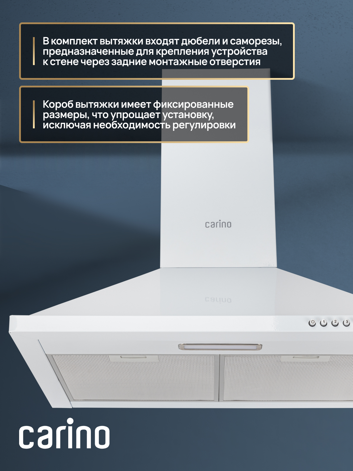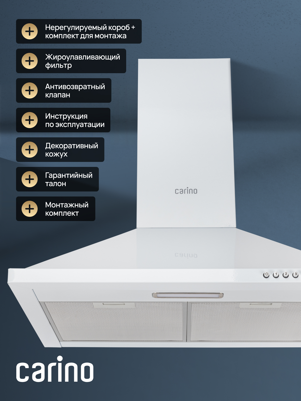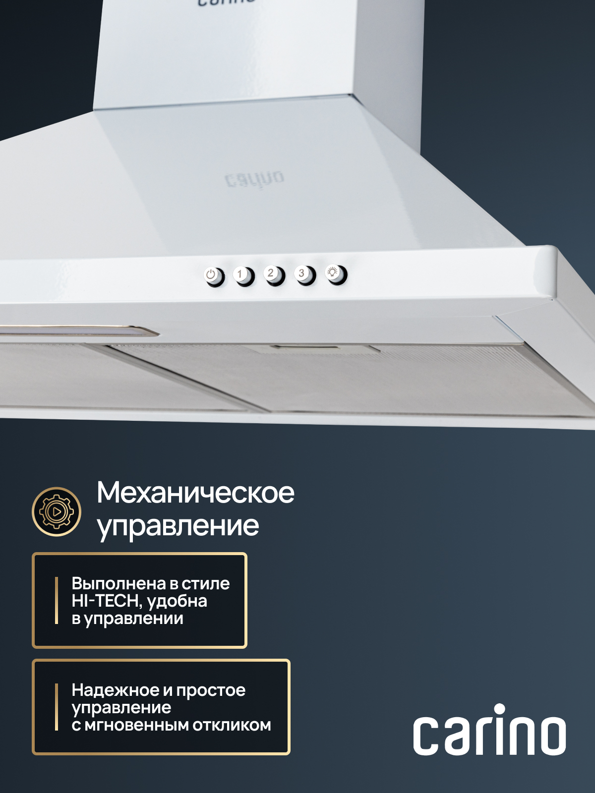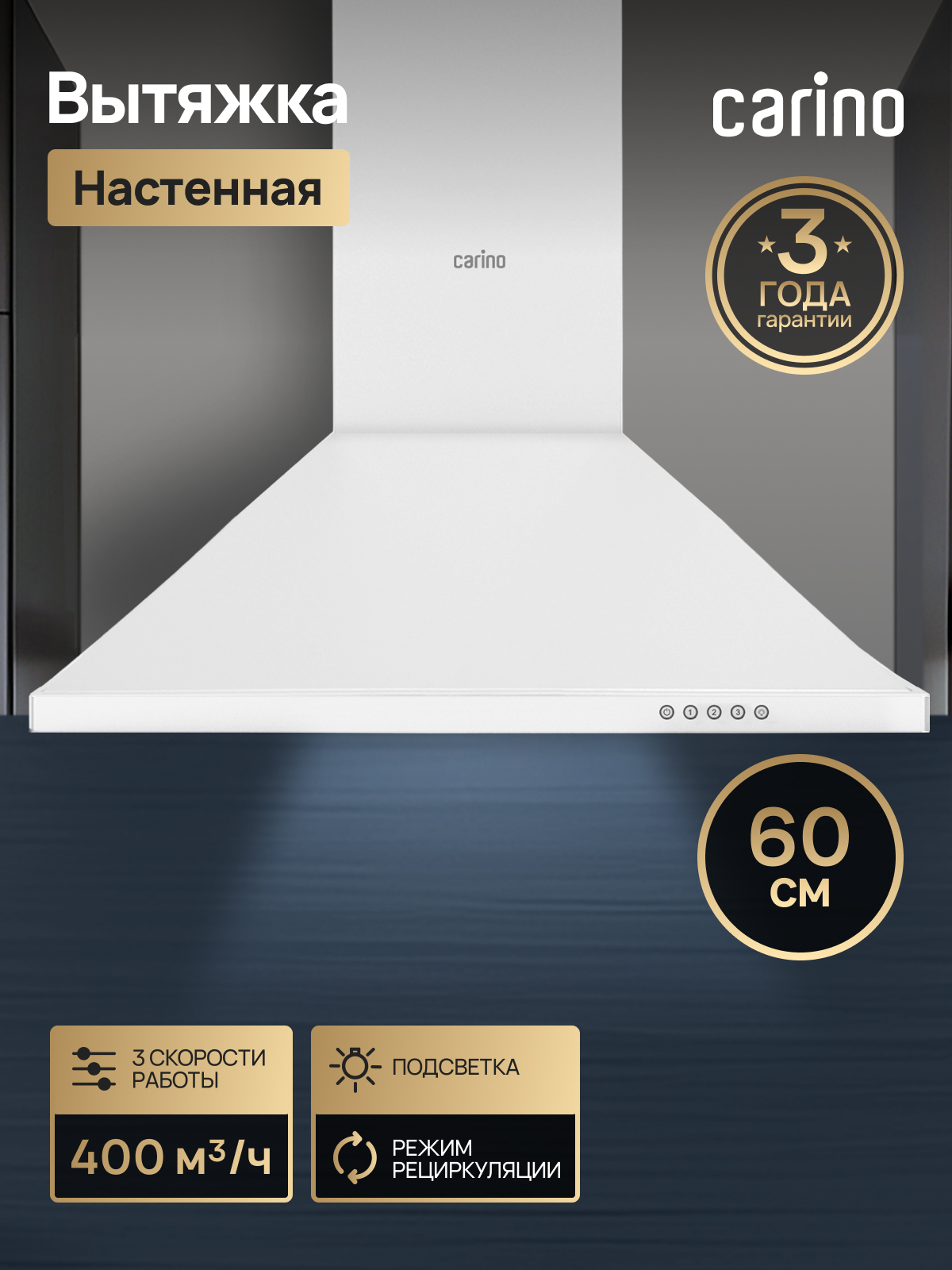 Настенная вытяжка CARINO C8664SM 60см, 3 скорости, механическое управление, подсветка, режим рециркуляции, белая
